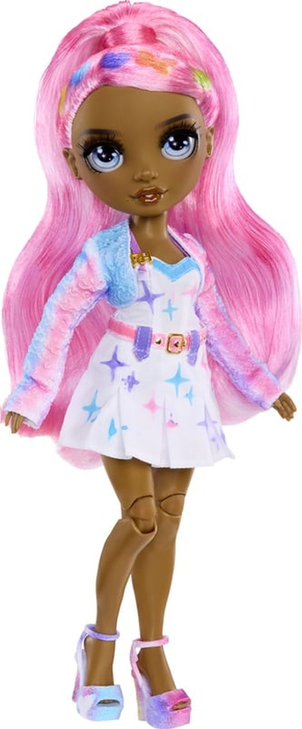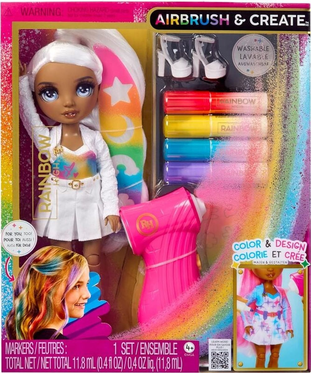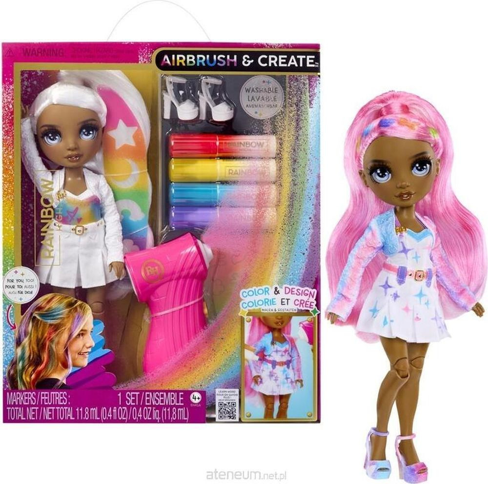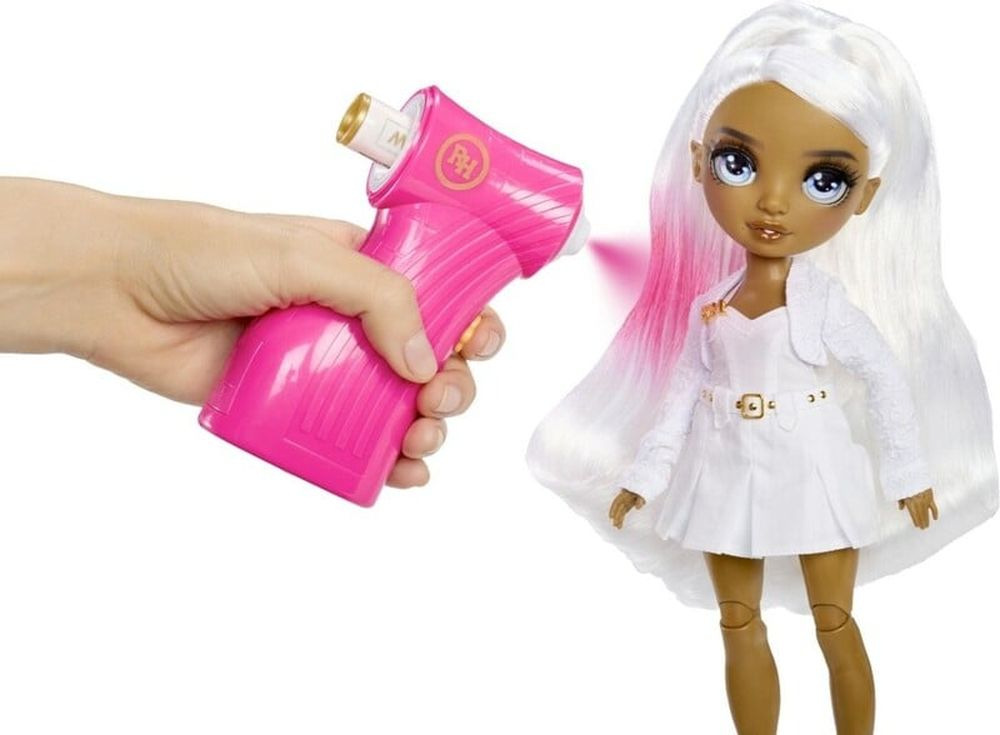 Cílem Rainbow High je podporovat kreativitu a sebevědomí prostřednictvím barev. Představujeme nový způsob, jak barevně stylovat panenku, kterou můžeš upravit podle své fantazie. Panenka je celá bílá, od hlavy až k patě, což ti umožní snadno vytvářet barevné variace a měnit její outfit nebo účes znovu a znovu. Můžeš použít omyvatelné fixy z balení v Airbrush pistoli nebo kreslit přímo na oblečení a vlasy. Poté stačí opláchnout a opakovat. Znovu a znovu.