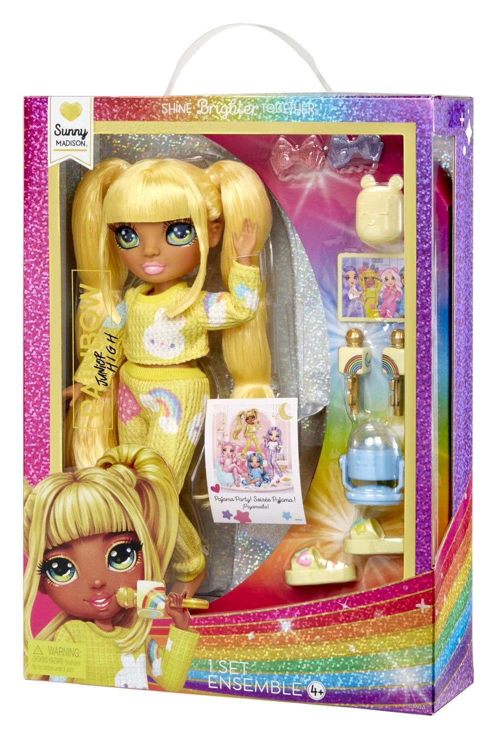 Potkej se s mladšími verzemi oblíbených Rainbow High Fashion panenek v úplně novém balení. Bella, Sunny, Skyler a Violet mají každá svůj vlastní příběh o tom, jak objevily svou vášeň pro kreativitu, než začaly chodit na školu Rainbow High. Každá z panenek je oblečená v pyžamu.