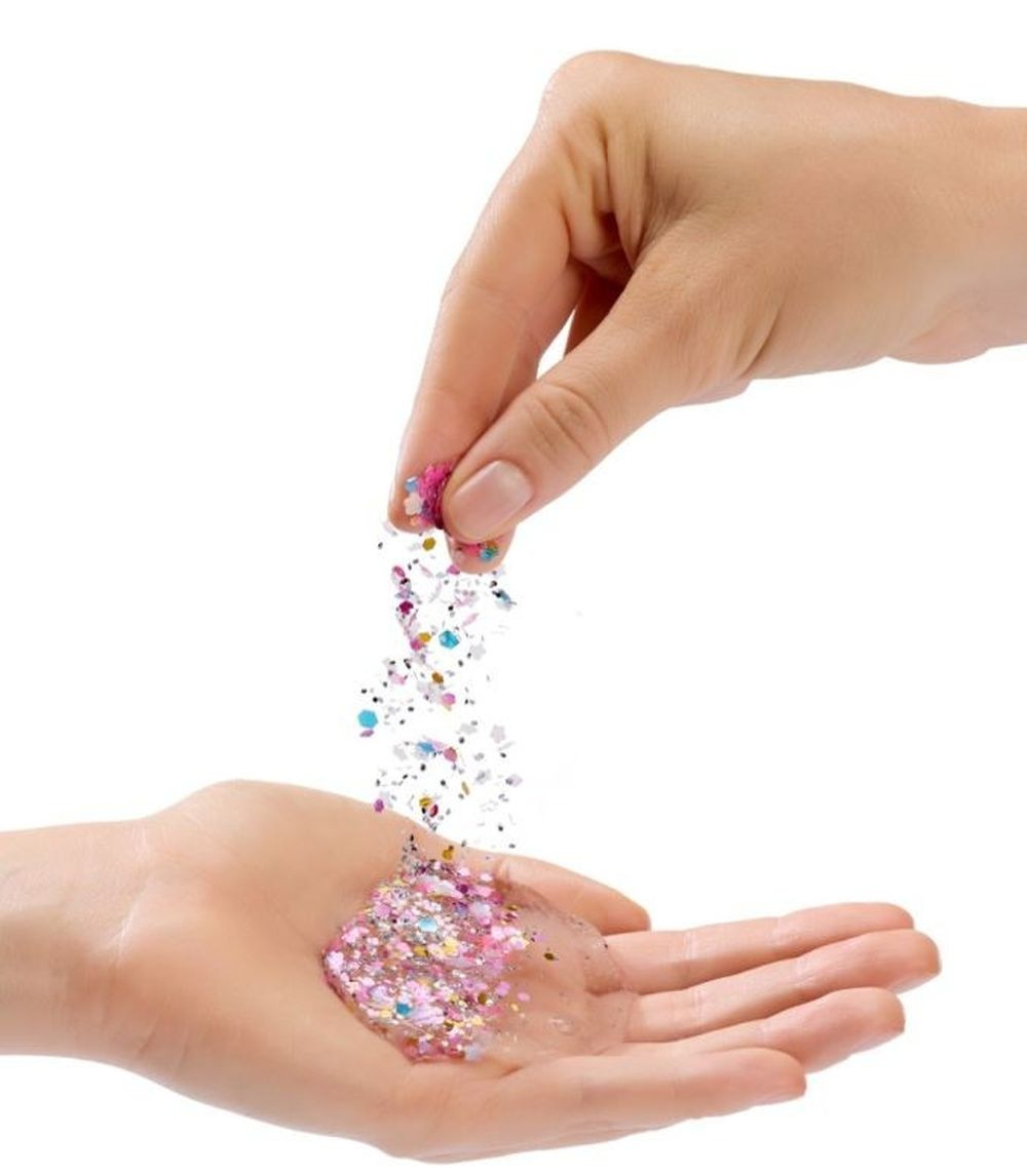 Obsah balení: • 1 ze 4 panenek s dlouhými vlásky a 5 klouby • 1 outfit, 1 pár bot, 1 pár náušnic • průhledný sliz • 4 druhy třpytek • 1 kouzelný mazlíček