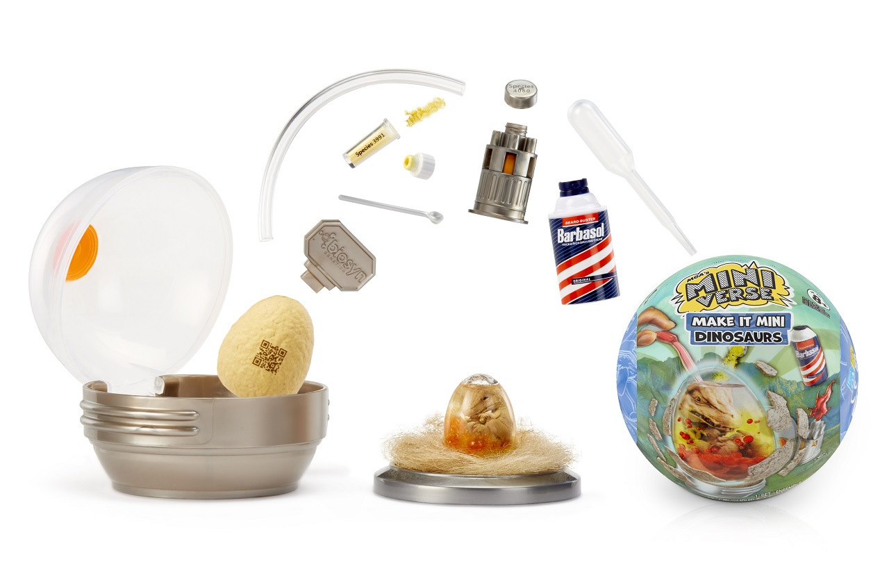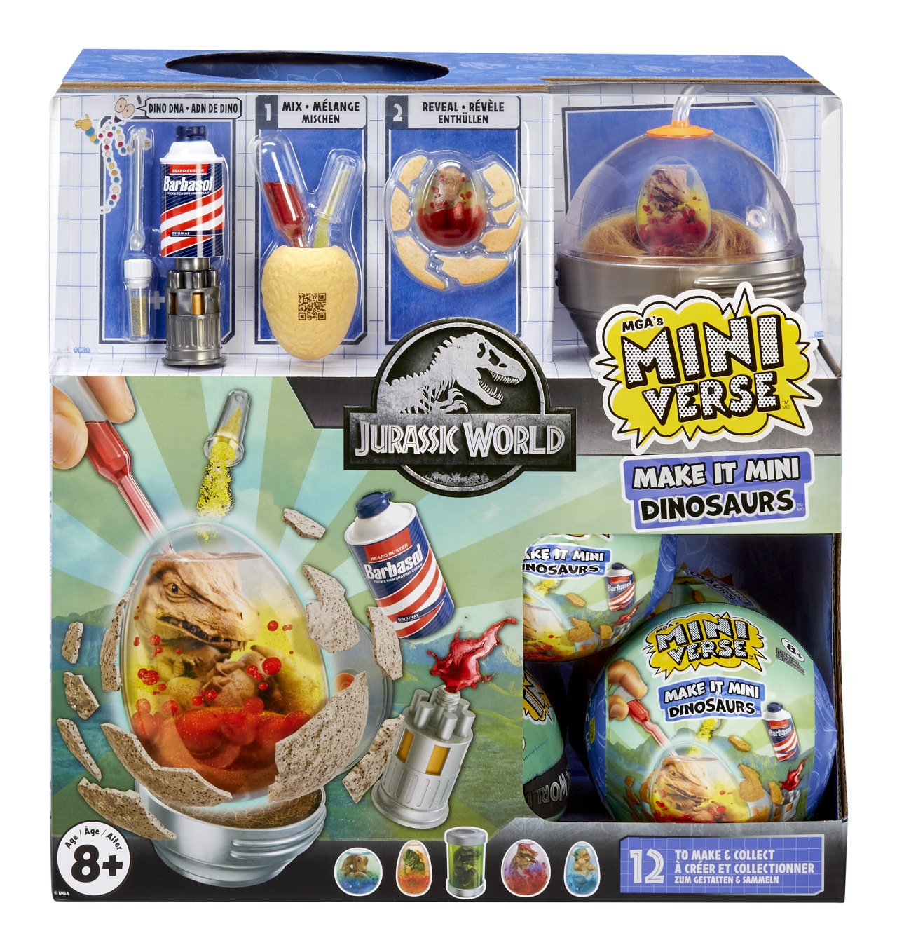 V kouli ve tvaru inkubátoru pro dinosaura najdeš dinosauří DNA a stříkačku. Do dinosauřího vejce, které má QR kód jako ve skutečném filmu, přidej DNA. Pokud máš v balíčku vejce, zatřes s ním, rozbij ho a sleduj, jak vzniká mini dinosaurus. 12 dinosaurů v sérii.