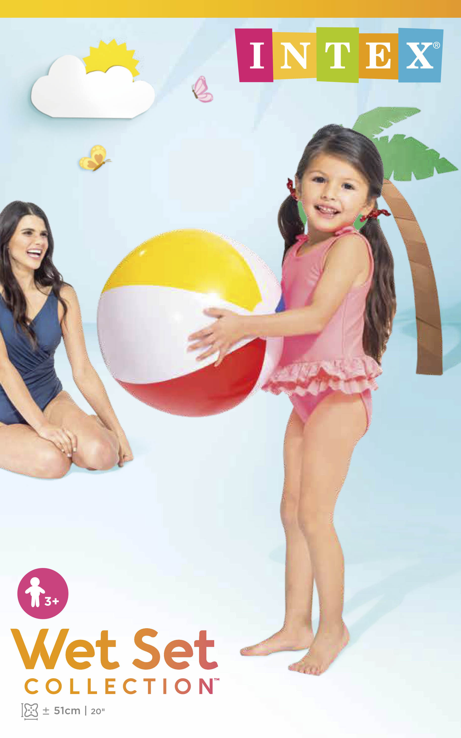 Nafukovací velký míč s barevnými pruhy. Vhodný do vody a nebo na plážový volejbal. Průměr 51 cm. Věk: 3+