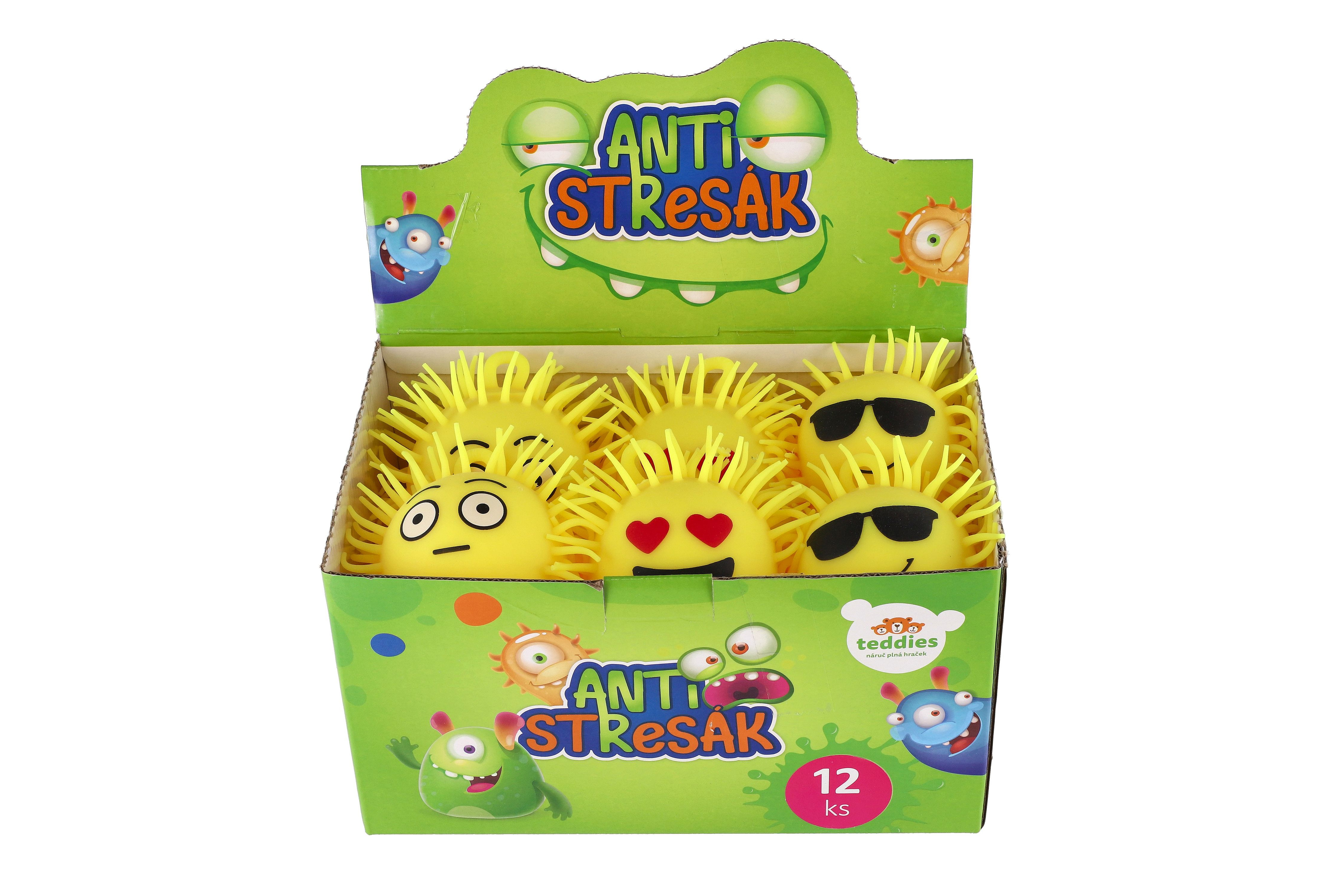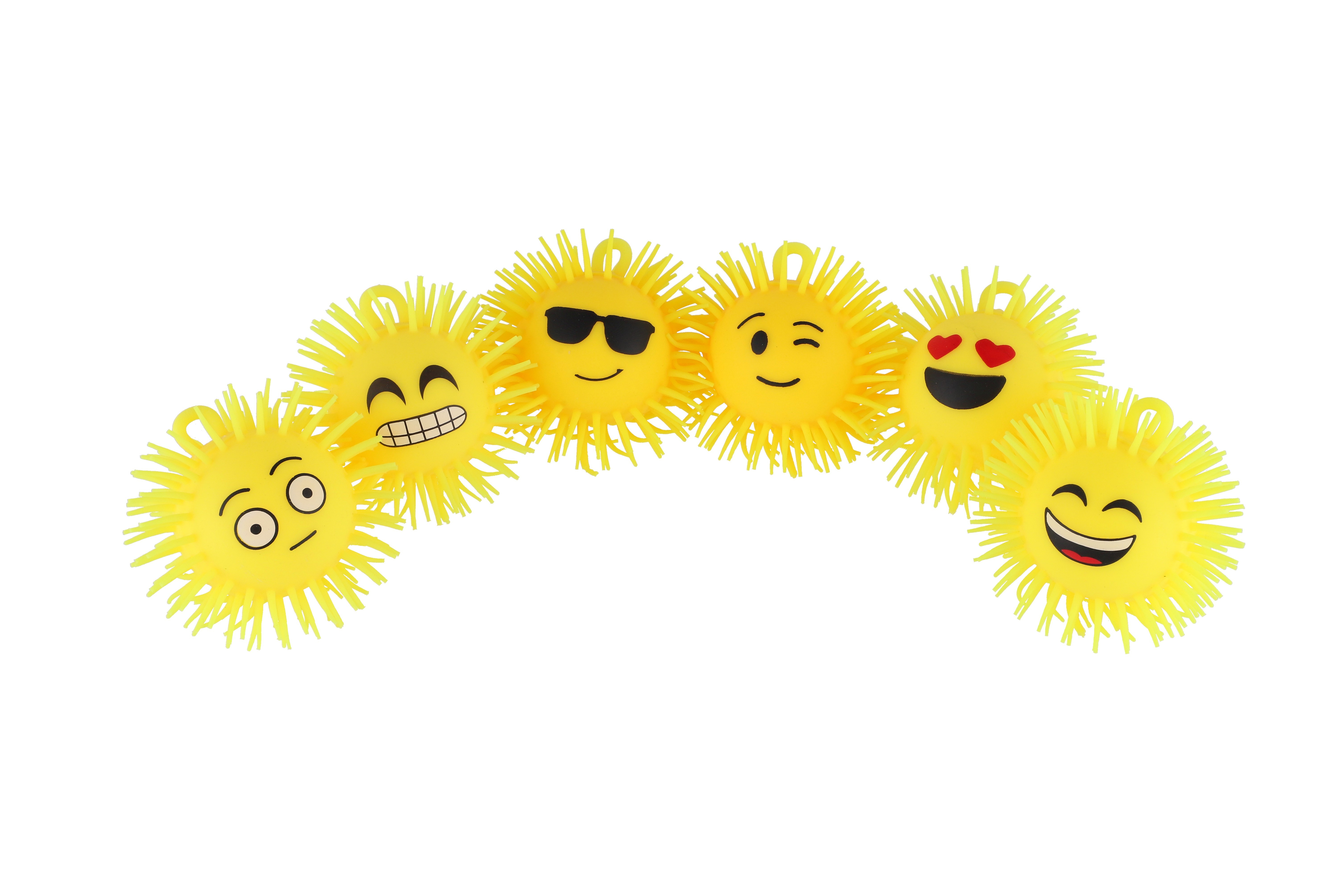Popis Teddies Míček chlupatý smajlík antistres. mačkací silikon 8cm na bat. se světlem mix druhů