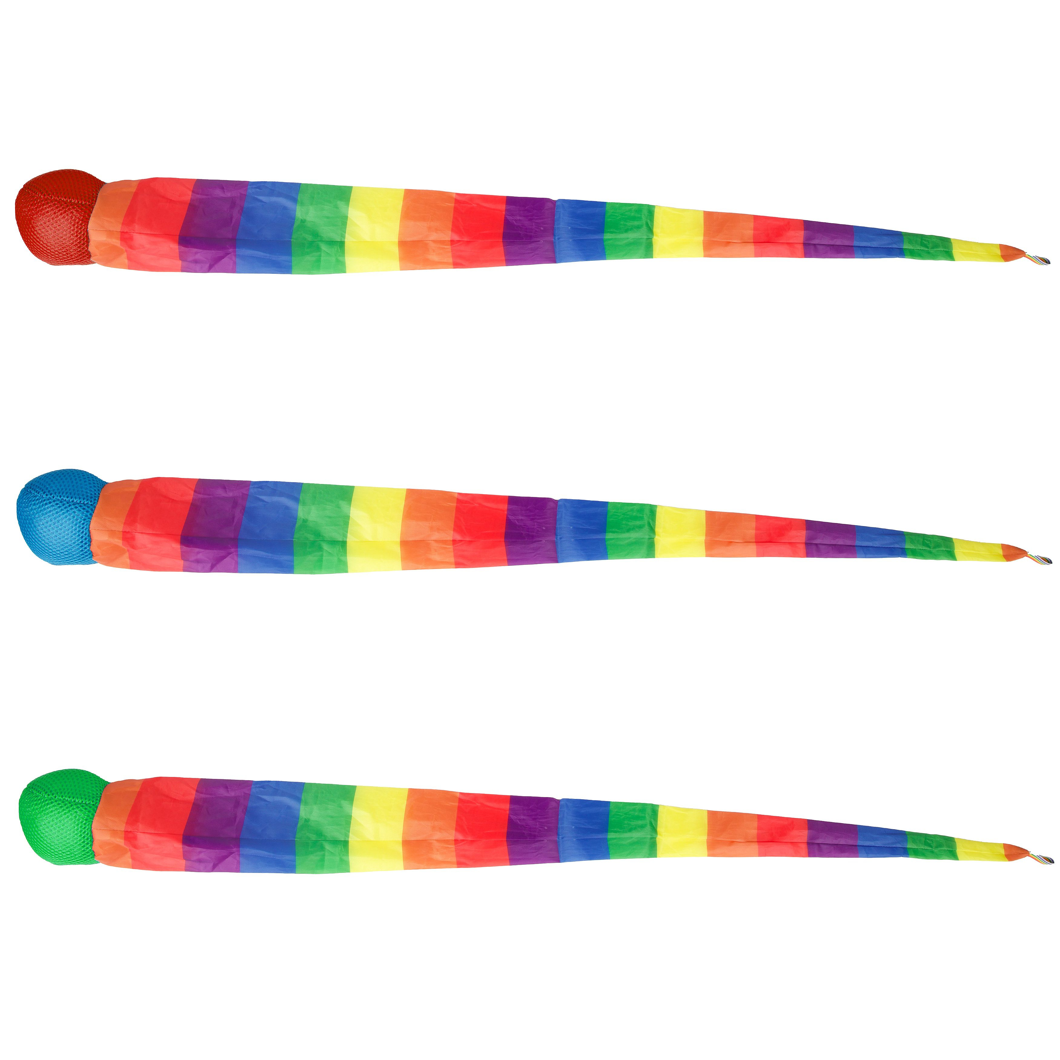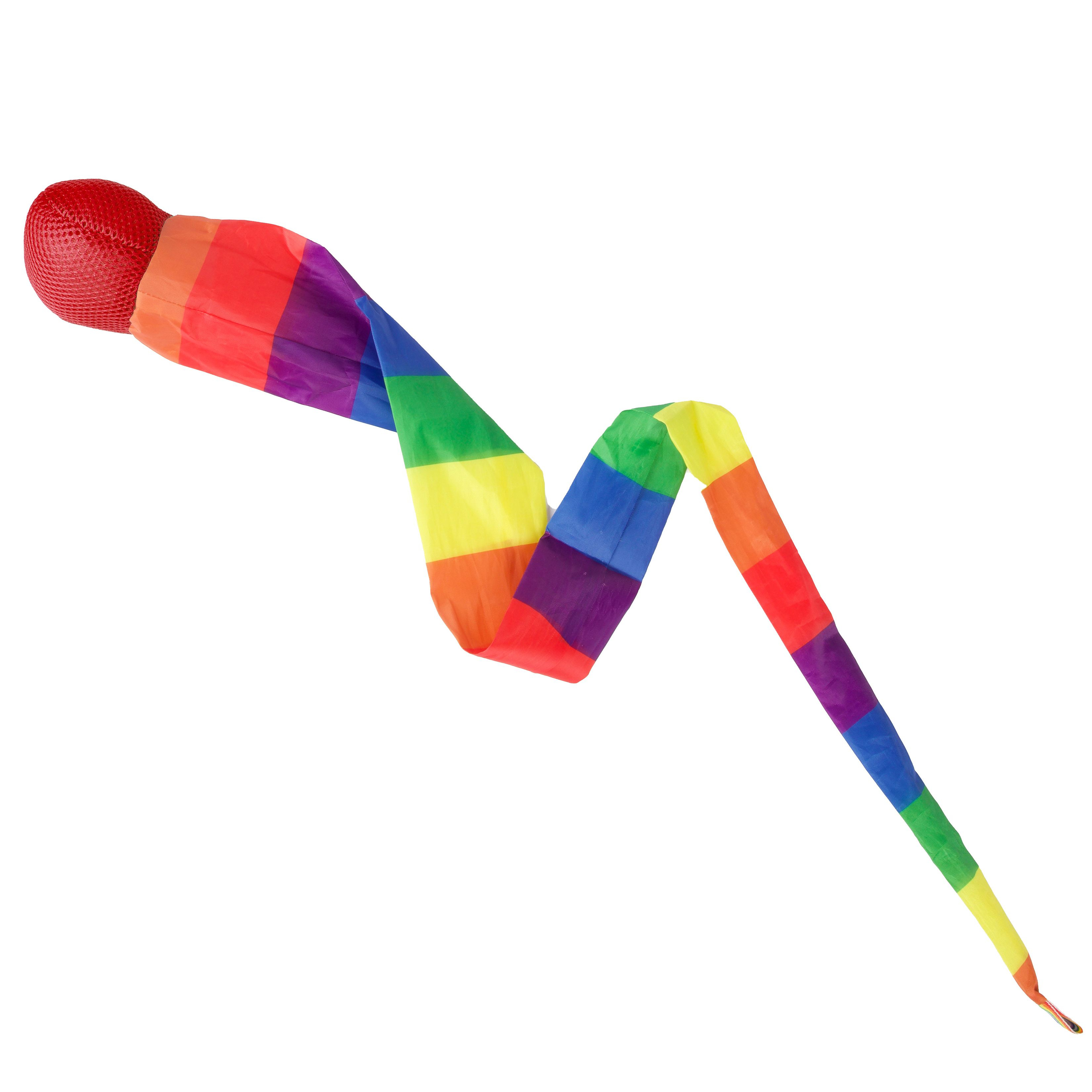 Míček měkký s dlouhým ocáskem látka 100cm duhový na kartě