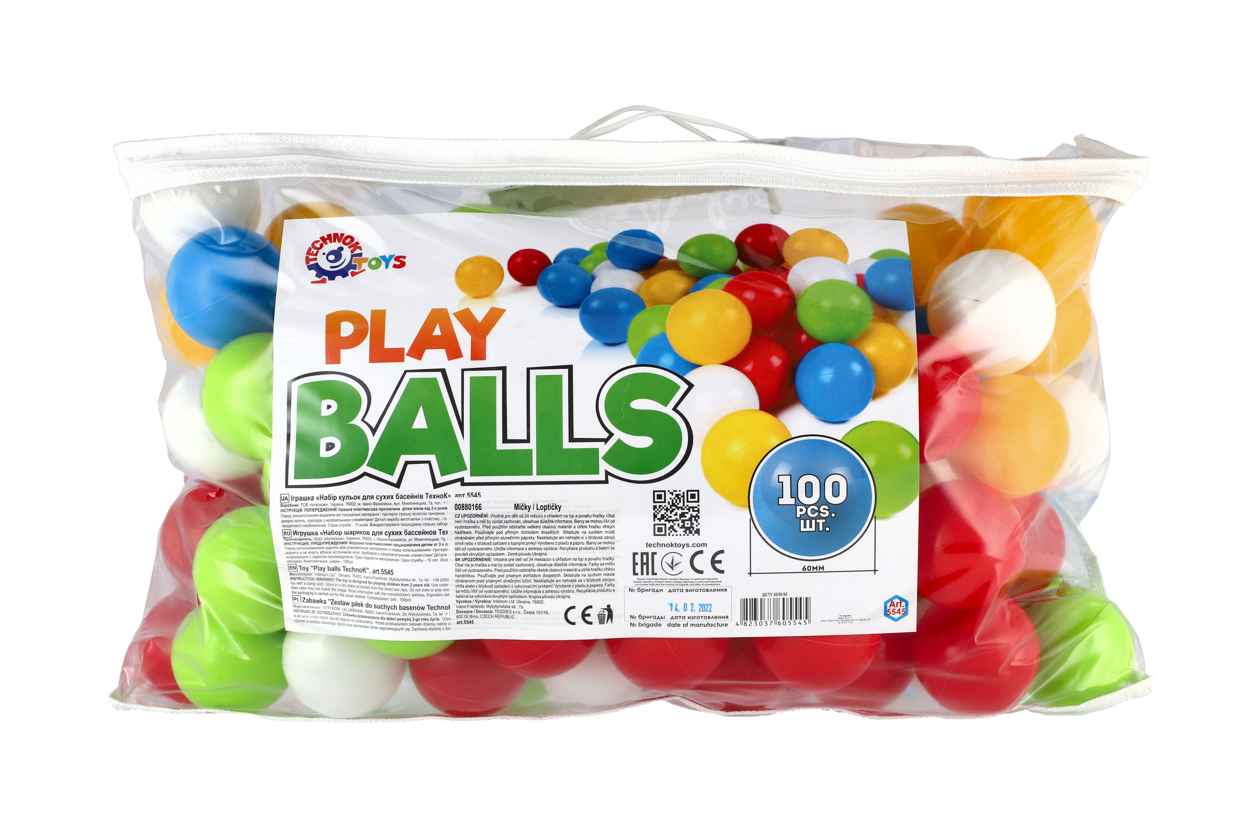 Teddies Míček/Míčky do hracích koutů 6cm barevný 100ks v plastové tašce 24m+