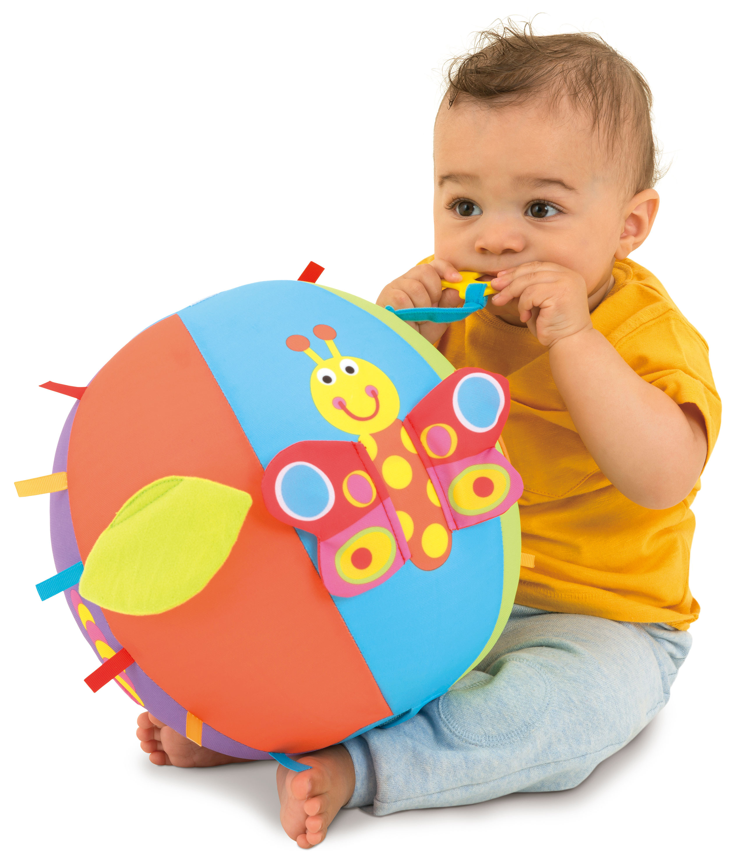 Míč je měkký, lehký a je ideální pro první zábavné míčové hry.