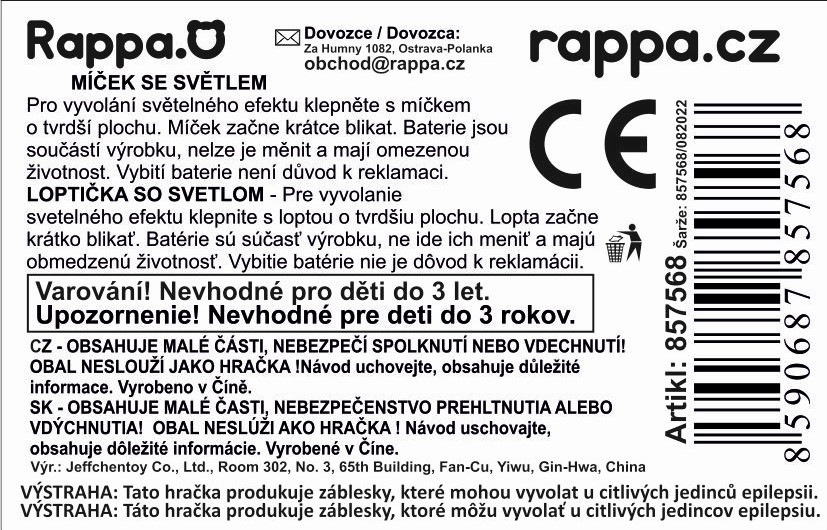 Barevný míček se světelným efektem! Po hození míčku o tvrdou plochu začne barevně blikat. Navíc je m
