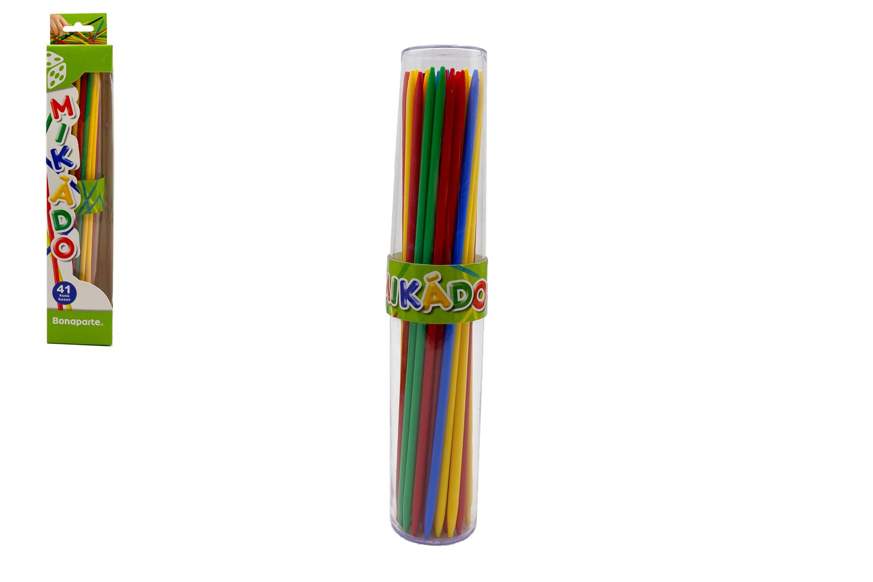Celý svazek tyčinek se zarovná, sevře jednou z dlaní a pak se náhle z ruky uvolní na stolní desku či jinou podložku. Tyčinky dopadnou na stůl a soupeři pak vytahují z hromádky jednu za druhou. Špatné rozhození je možné 2x zopakovat. Pokud při vytahování dojde k pohnutí kterékoliv jiné tyčinky, ve hře pokračuje soupeř. Po získání tyčinky zvané Mandarin či Mikádo (černá nebo zelená) si jí lze při uvolňování ostatních pomáhat. Hra končí po rozebrání všech tyčinek. Vyhraje ten ze soupeřů, kterému se podaří nasbírat tyčinky s největším bodovým součtem. Plastové pouzdro obsahuje 41 ks plastových tyčinek. Rozměr tyčinky 24,5 cm Rozměry balení 5,5 x 30 x 5,5 cm Vhodné pro děti od 3 let.