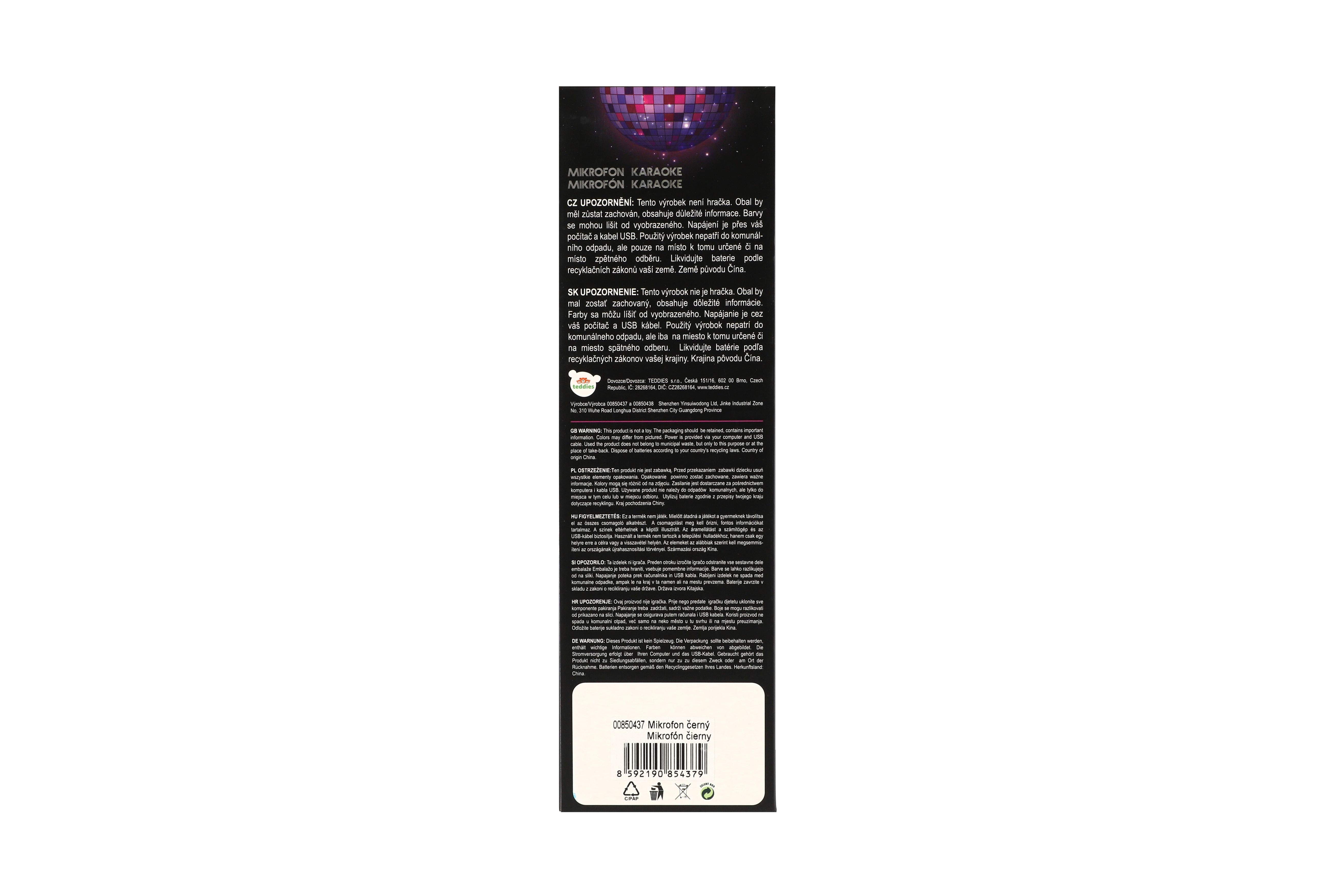Popis Teddies Mikrofon Karaoke Bluetooth černý na baterie s USB kabelem v krabici 10x28x8,5cm