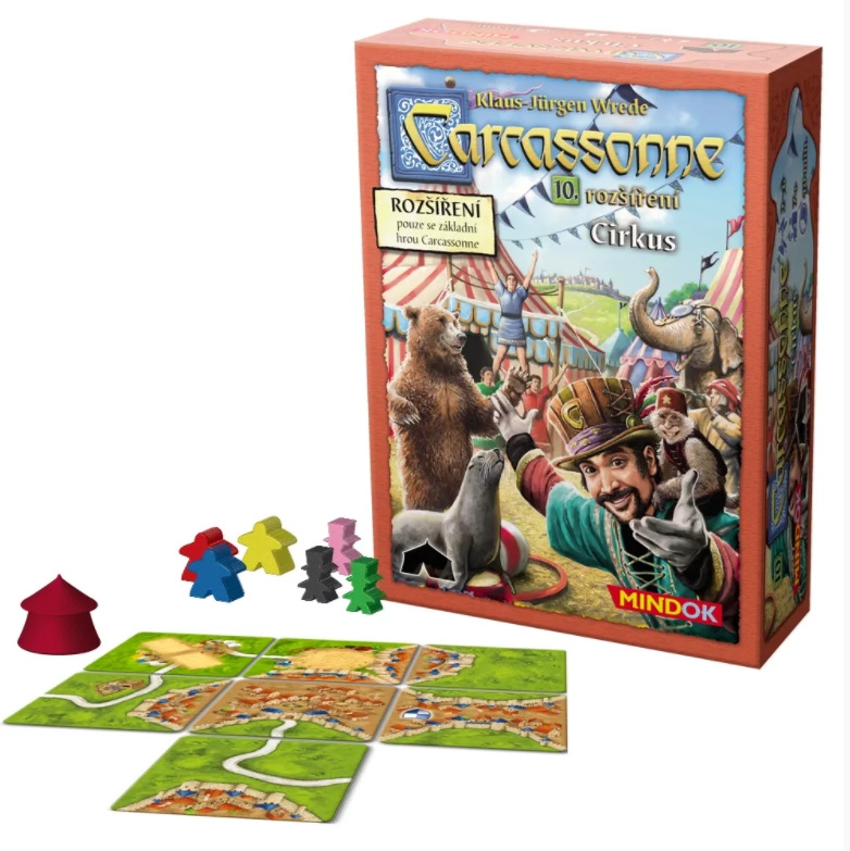 20 cirkusových kartiček krajiny (12 kartiček Místo pro manéž, 8 kartiček Cvičiště artistů), 16 žetonů zvířat (1 × slon, 2 × tygr, 3 × medvěd, 5 × lachtan, 4 × opička, 1 × blecha), 1 dřevěná figurka šapitó, 6 dřevěných figurek ředitelů