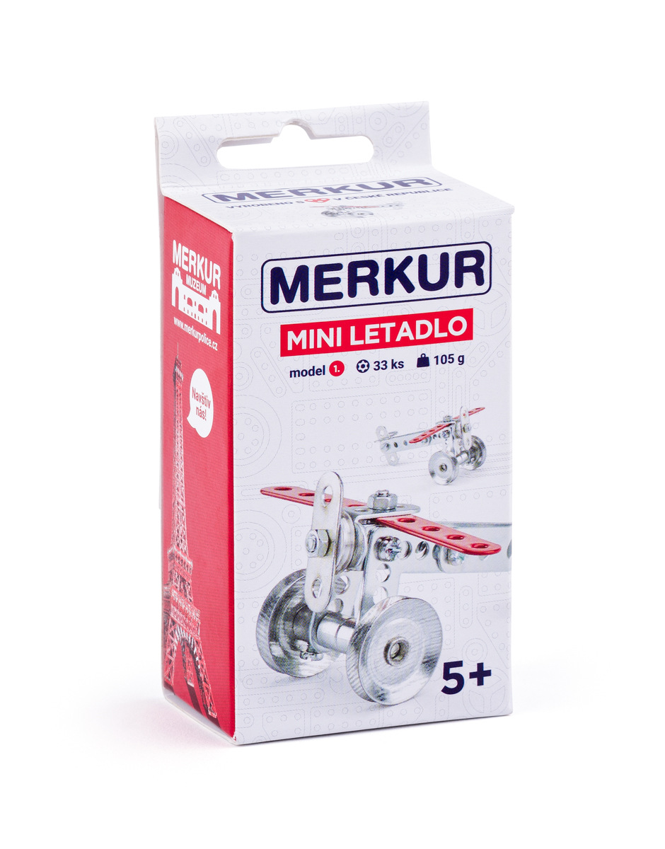 Startovací mini stavebnice Merku , z které je možné sestavit 1 model-letadlo. Ideální pro trénink jemné motoriky a představivost. Vhodné i pro děti, které s Merkurem začínají, ale také pro sběratele. Se sestavenými modely si lze hrát, jsou velmi odolné. Stavebnice obsahuje 33 dílků.|Rozměr balení:5x9,5x4,5 cm | Rozměr modelu: 8,5x5x9,5 cm.Věk: 5+| Nevhodné pro děti mladší 3 let | Váha: 105 g.
