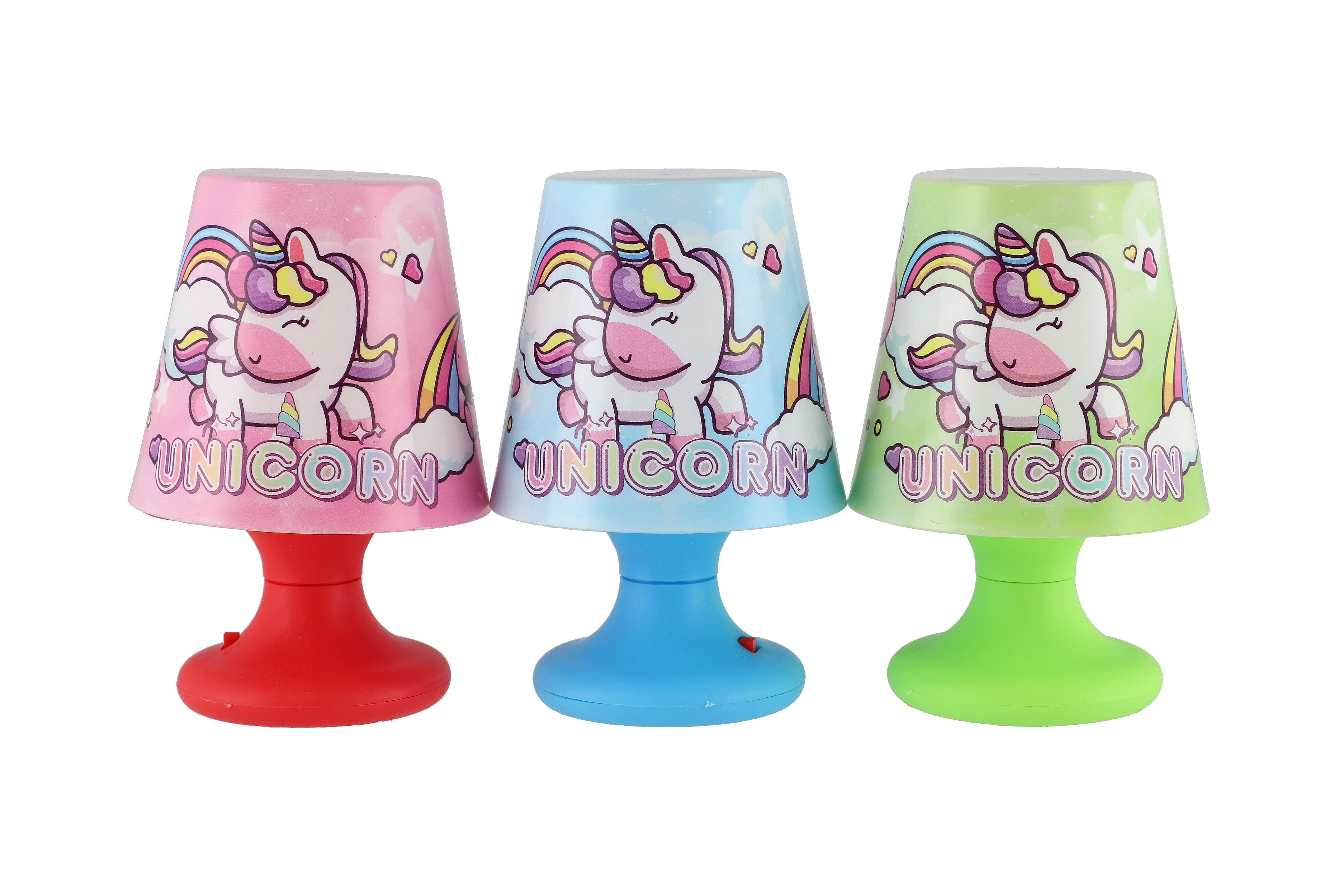 Popis Teddies Mini lampička s jednorožcem na stůl plast 8x11cm na baterie 3 barvy 12ks v boxu