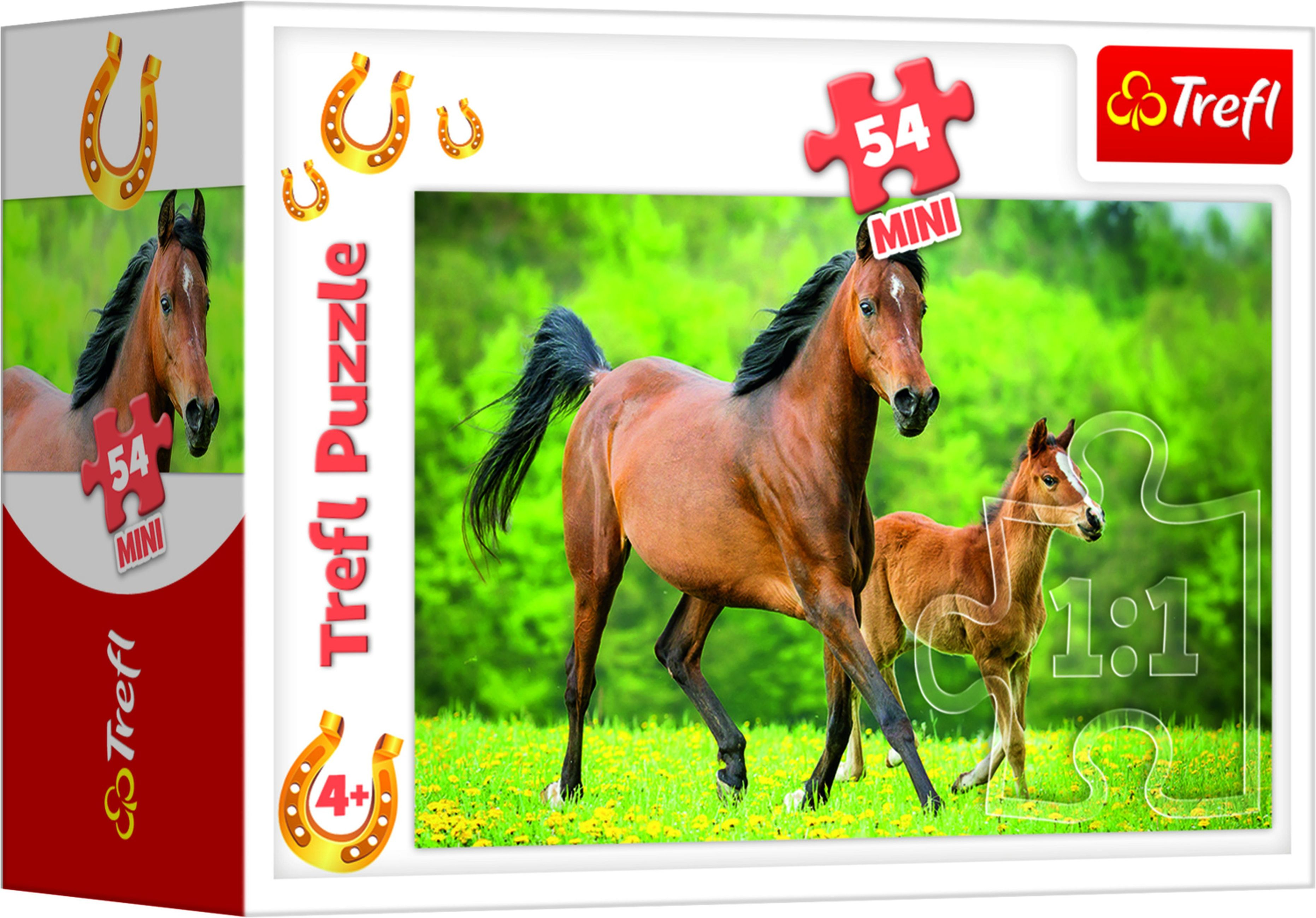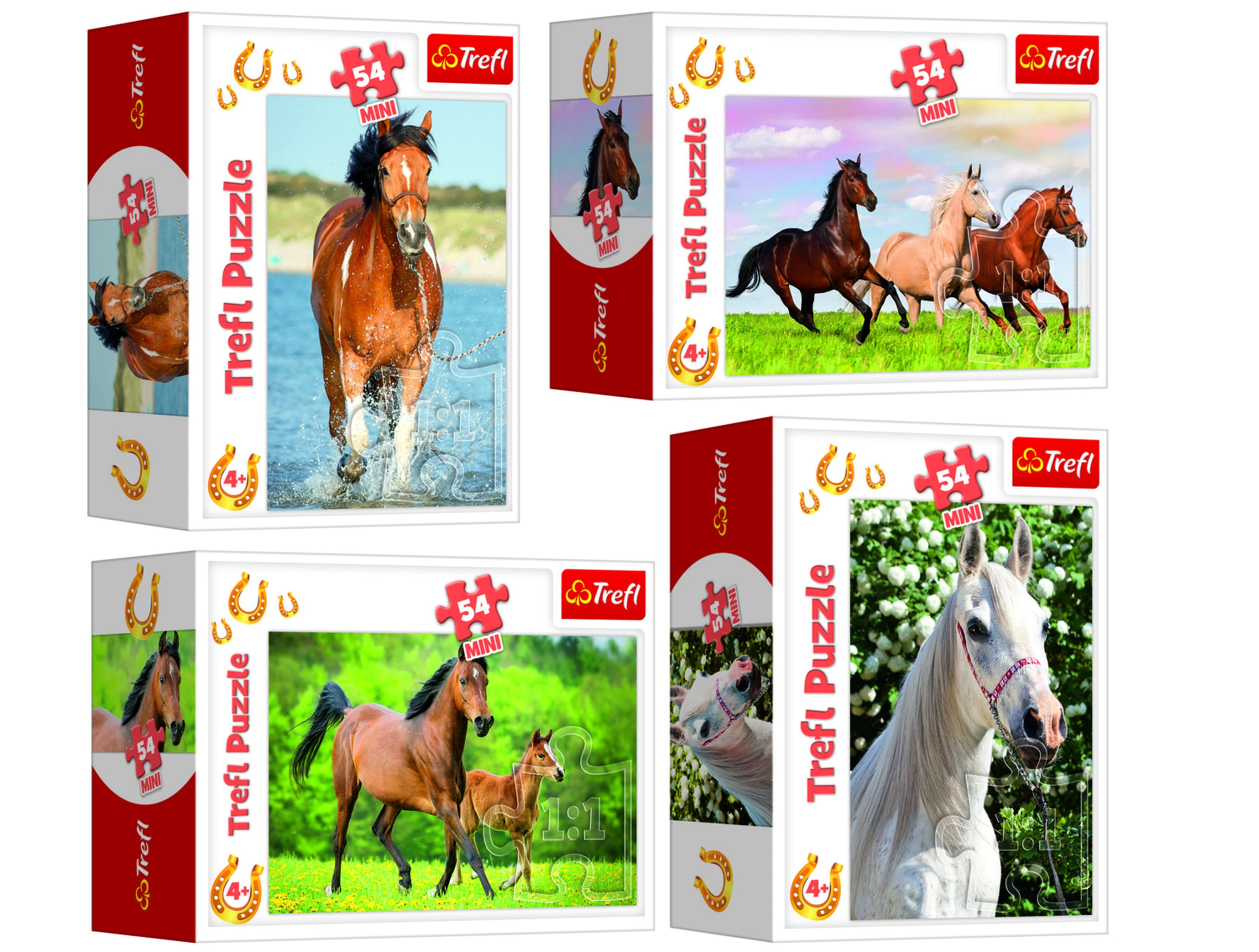 Trefl Minipuzzle 54 dílků Koně 4 druhy v krabičce 9x6,5x4cm