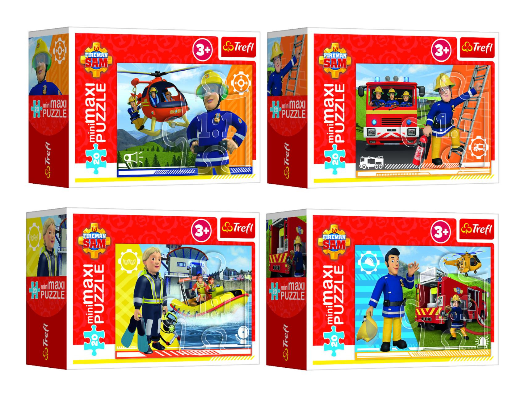 Popis Trefl Minipuzzle miniMAXI 20 dílků Hrdinský Požárnik Sam 4 druhy v krabičce 11x8x4cm
