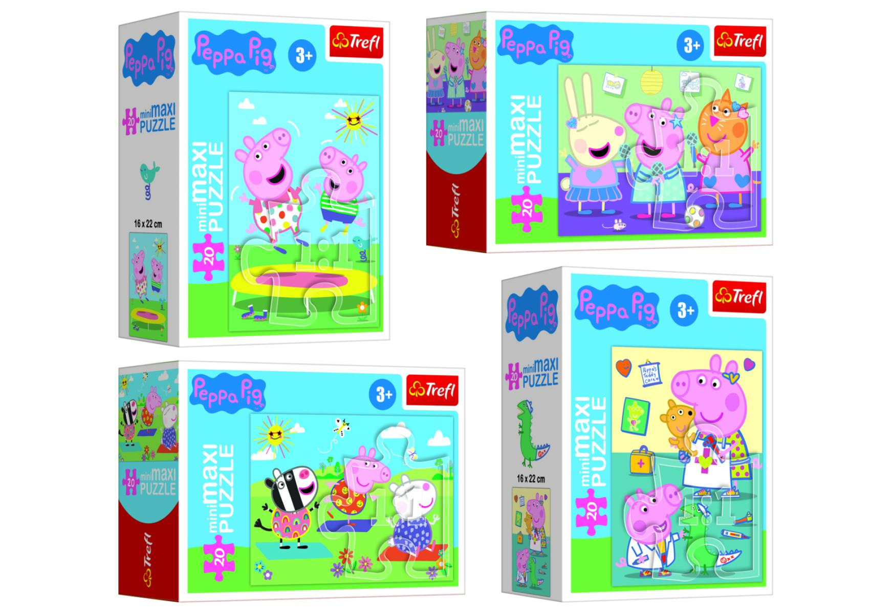 Trefl Minipuzzle miniMaxi 20 dílků Prasátko Peppa/Peppa Pig 4 druhy v krabičce 11x8cm