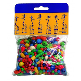 Mix barevných perlí s gumičkou na navlékání, pro vytvoření vlastní bižuterie. Velikost perlí v 70 g balení je 5 – 20 mm. Nevhodné pro děti do 3 let. Obsahuje malé části. Výrobek je zdravotně nezávadný