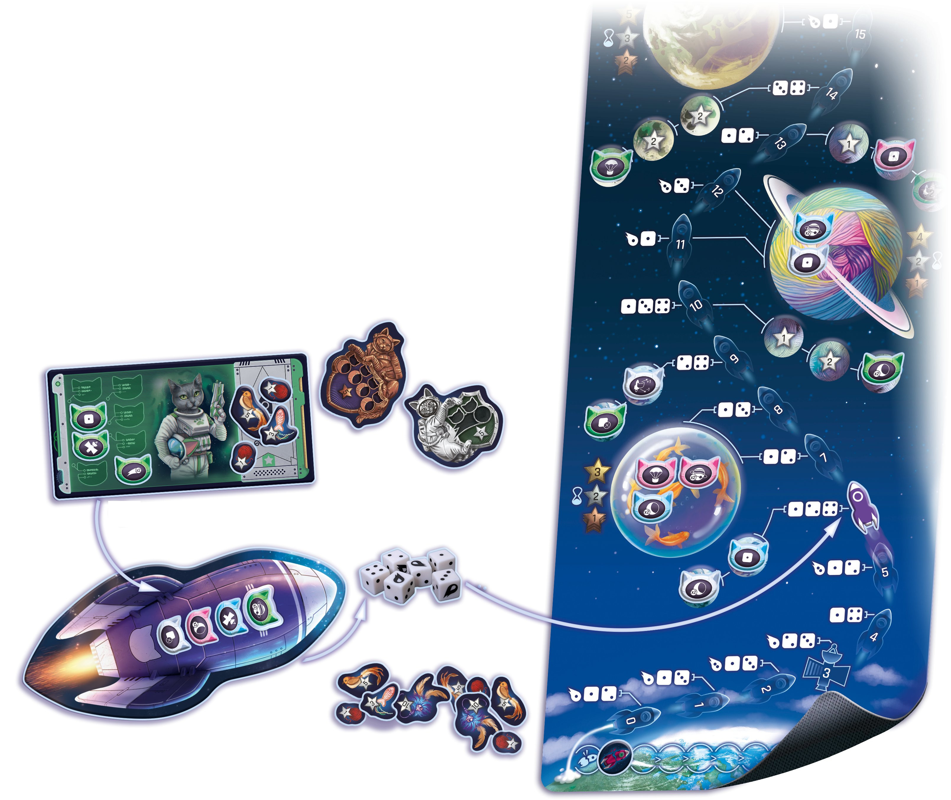 Rodinná desková hra s kočičími astronauty. Více