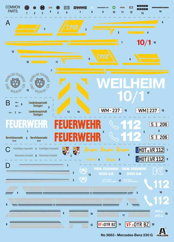 Popis Italeri Model Kit auto 3663 - Mercedes G230 Feuewehr (1:24)