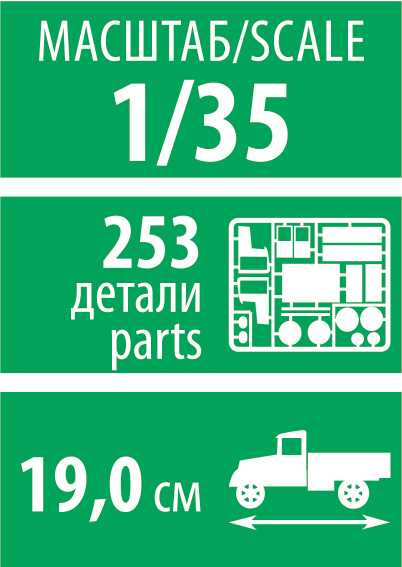 Model auta ke slepení. Velikost: 1:35; 20 cm. Počet dílků: 426. Informace o originálu a modelu: