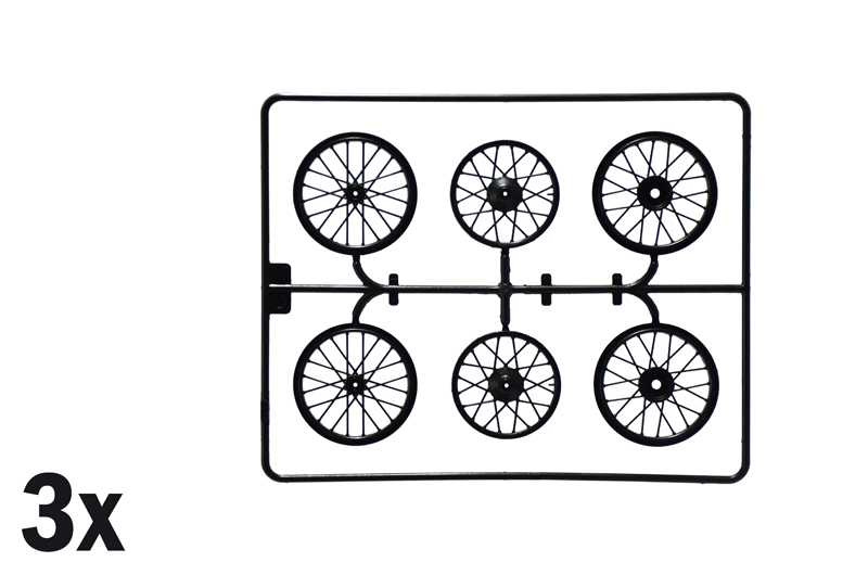 Barevný návod – Řiditelná kola – Realistické zavěšení kol – Velmi detailní motor – Gumové pneumatiky - 320 plastových částí - 30 chromovaných částí – Díly z fotoleptaného kovu – Otevíratelná kapota motoru – Šroubky, hadičky, lano a nylonová síťka