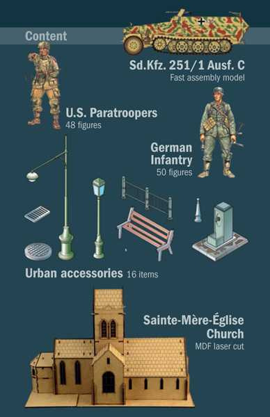 Popis Italeri Model Kit diorama 6199 - Battle of Normandy: Saint-Mere-Église 6 June 1944 (1:72)