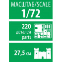Model diorama ke slepení. Velikost: 1:72; 27,5 cm . Balení obsahuje: 220 dílků ke složení modelu.