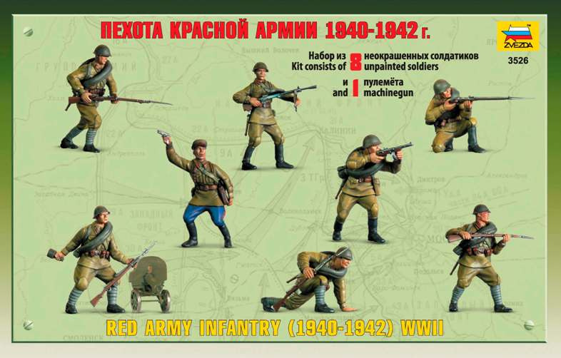 Popis Zvezda Model Kit figurky 3526 - Red Army Infantry (1940-42) (1:35)