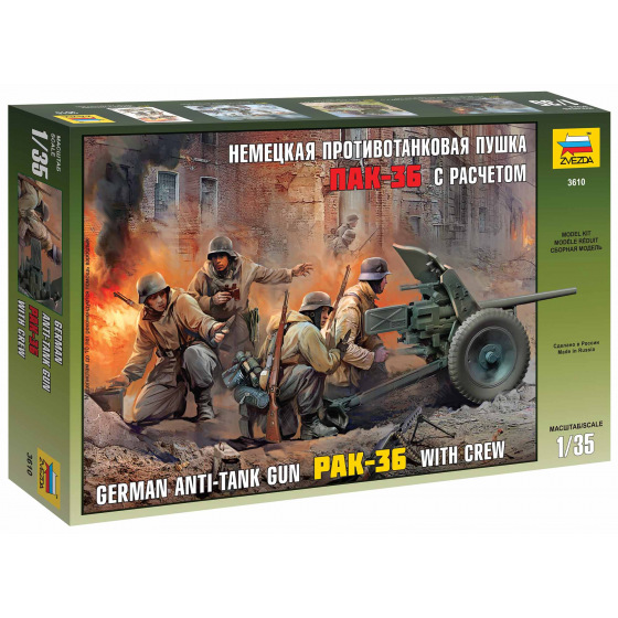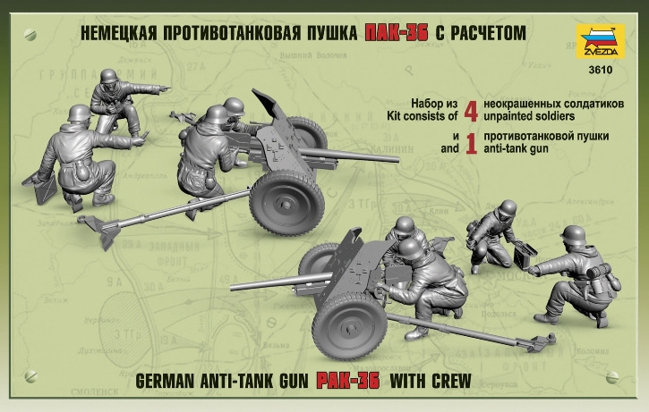 Popis Zvezda Model Kit figurky 3610 - PAK-36 with Crew (1:35)