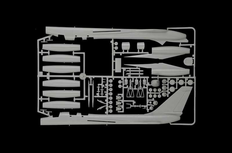 Model letadla ke slepení. Velikost: 1:72; 40,9 cm. Balení obsahuje polepy pro 6 verzí modelu.