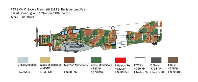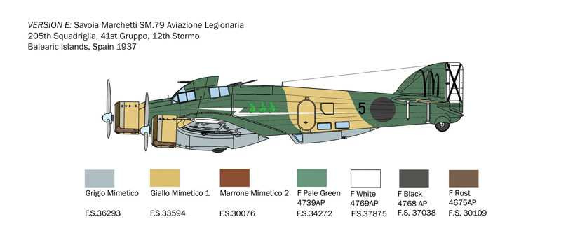 Informace o originálu: Letoun S.M.79 Sparviero byl vytvořen a vyráběn ve 30. letech 20. století italskou společností SIAI-Marchetti původně jako civilní letoun, který v tomto období dosáhl významných světových rychlostních rekordů. Měl typickou dolnoplošnou konstrukci s třemi motory a drak ze dřeva, plátna a kovu. Následně byl přestavěn na vojenské varianty a během druhé světové války byl hojně využíván italskou Regia Aeronautica, zejména jako bombardér ve Středomoří a poté jako účinný torpédový bombardér. Byl rozpoznatelný podle "hrbu" za pilotní kabinou a díky třem hvězdicovým motorům Alfa Romeo 126 RC34 o výkonu 750 koní byl schopen dosáhnout maximální rychlosti 430 km/h. Ve své základní bombardovací roli byl nahrazen mnoha jinými modernějšími letouny, nicméně "Sparviero" po celou dobu trvání války dosahoval v rukou svých zkušených posádek důležitých výsledků při torpédových námořních operacích, při nichž napadal nepřátelskou lodní dopravu. 100% NOVÁ PODOBA STAVEBNICE – DÍLY Z FOLOLEPTANÉHO KOVU – BAREVNÝ NÁVOD - SUPER OBTISKY PRO 4 VERZE