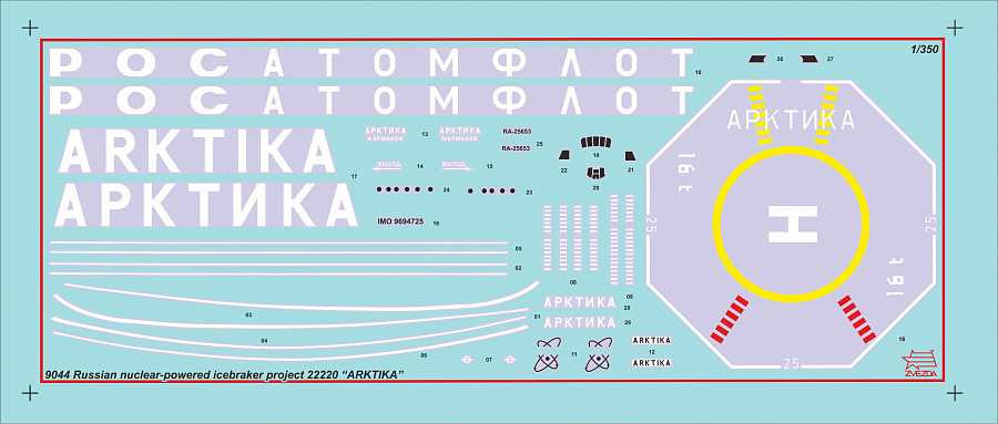 Popis Zvezda Model Kit loď 9044 - "Arktika" Russian Nuclear Icebreaker (1:350)