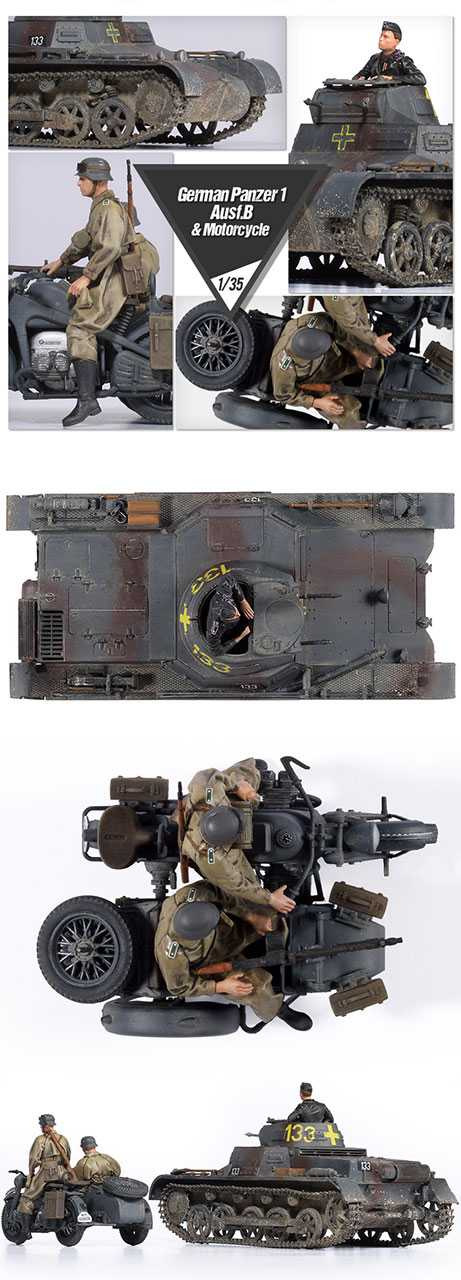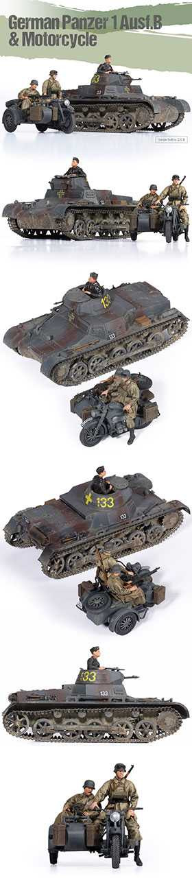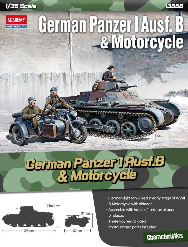 Academy Model Kit military 13556 - German Panzer I Ausf.B & Motorcycle (1:35)