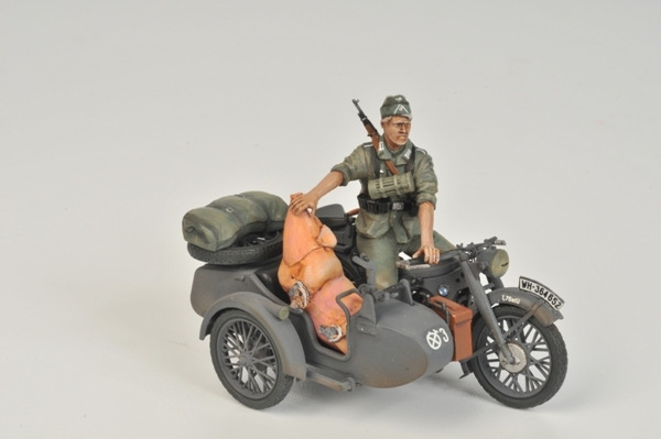 NĚMECKÝ MOTOCYKL R12 SE SAJDKÁROU A S POSÁDKOU, DRUHÁ SVĚTOVÁ VÁLKA