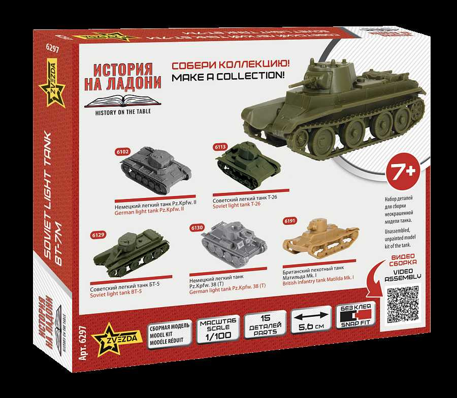 Popis Zvezda Model Kit tank 6297 - Soviet WWII Tank BT-7 / 7a (1:100)