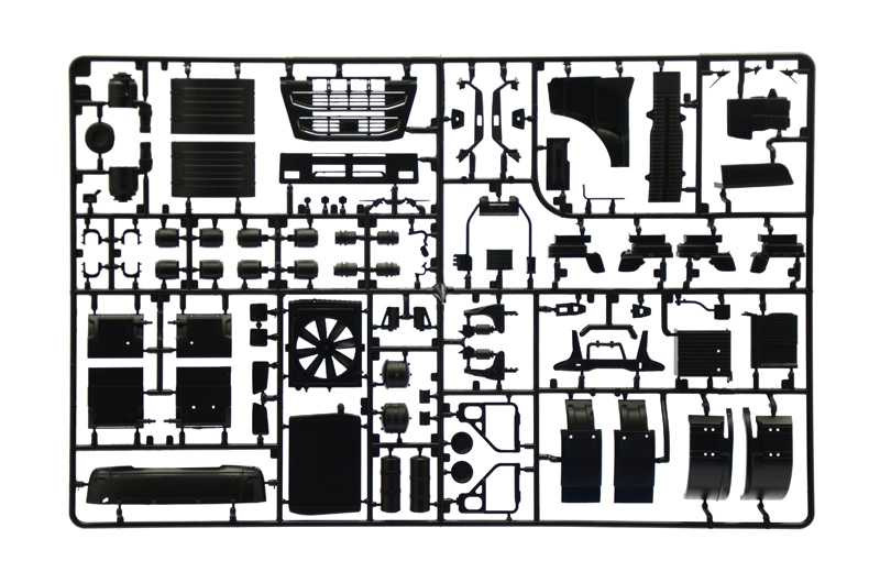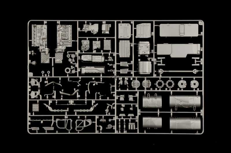 Nové díly - Plně detailní kabina a interiér - Plně detailní motor a rám - Otevřené nebo zavřené dveře řidiče - Otevřená nebo zavřená mřížka chladiče - Super obtisky pro 2 verze - Chromované lepidlo - Fotoleptané díly - Gumové pneumatiky - Barevný návod