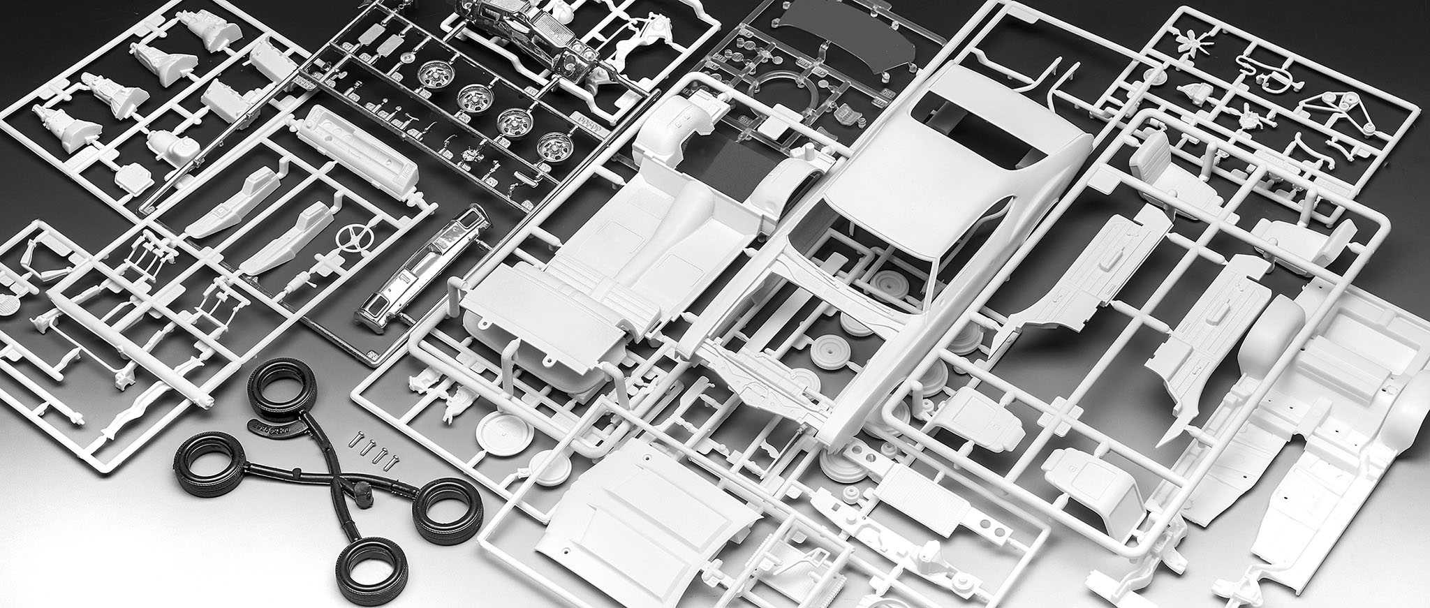Model auta ke slepení. Velikost: 1:24; 20,9 cm. Balení obsahuje: 124 dílků ke slepení, lepidlo, štětec a barvičky.