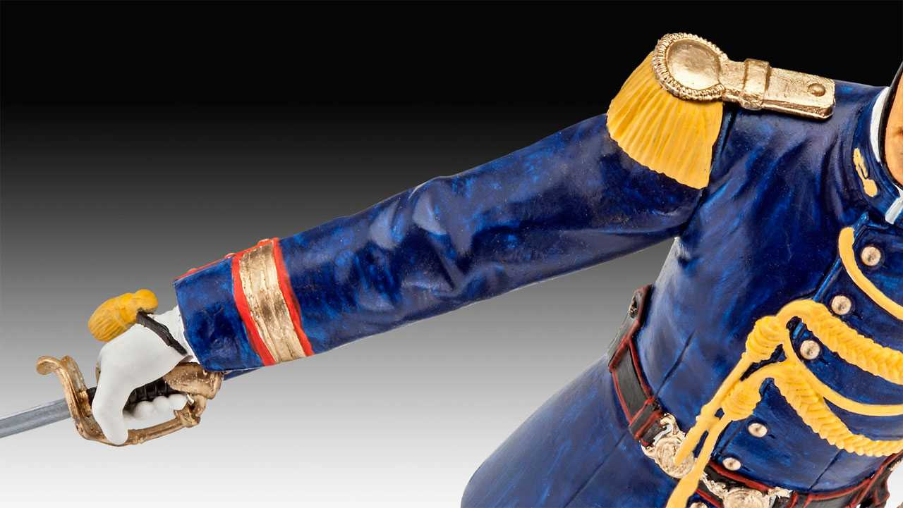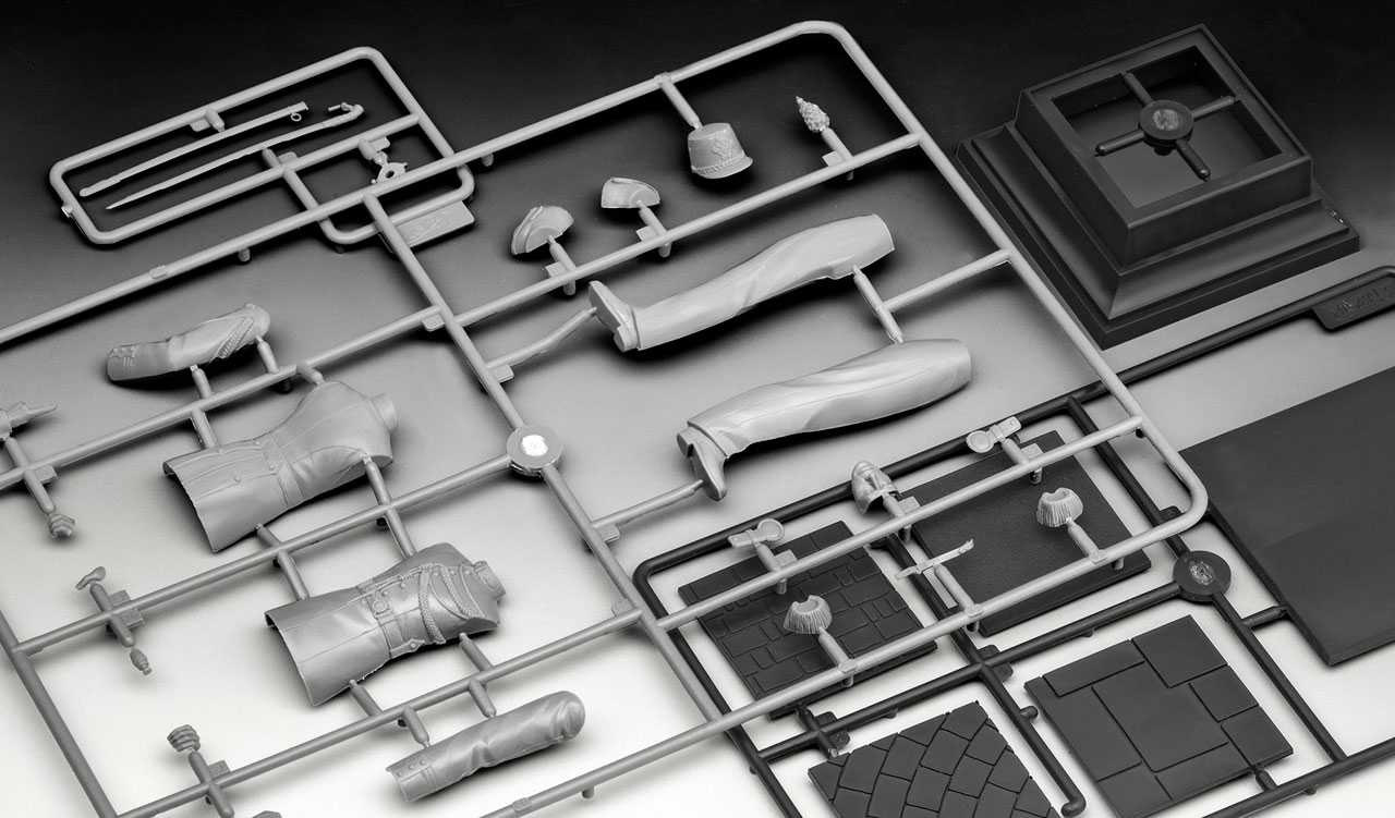 Model figurky ke slepení. Velikost: 1:16; 12,7 cm. Balení obsahuje: 31 dílků ke slepení, lepidlo, štětec, 3 barvičky (5 ml).