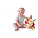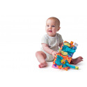 Všechny látkové kostky obsahují různé hrací komponenty: chrastítka, kousátka, pískátka, zrcátko vyrobené z bezpečnostní fólie ve kterém může dítě pozorovat svůj obličej a části vydávající zvuky mačkaného papíru. Všechny tyto komponenty stimulují dětské smysly i jemnou motoriku. Věk: 0+ | Rozměr jedné kostky: 9 x 9 cm | Design německé návrhářky Britty Hurter