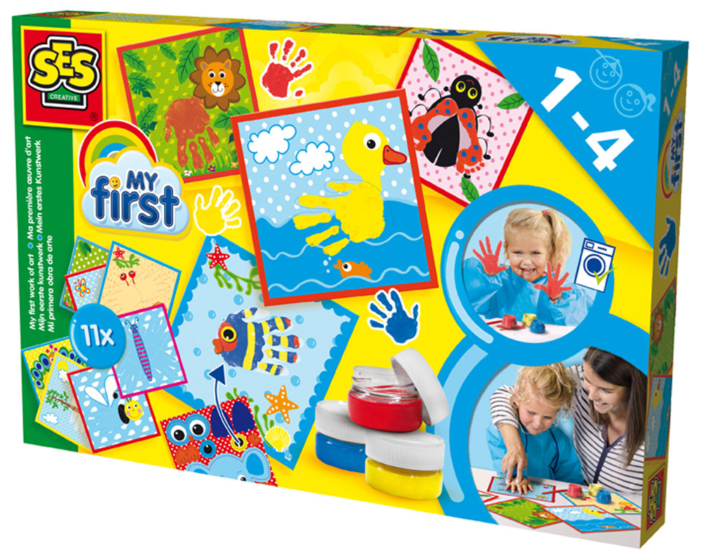 Moje první umělecké dílo je perfektní způsob pro rodiče, jak své děti učit malovat. Sada obsahuje veselé tištěné karty, které ukazují, kde byste měli umístit svou ruku nebo nohu. Otlačte ručičku do vámi vybrané barvy a poté přiložte na předtištěný papír s obrázkem. Domalujte podle fantazie nebo předlohy. Výsledek bude skvělý! Sada obsahuje: 3 barvy pro malování prsty 11 předtištěných karet Štětec Extra tištěné detaily Sada neobsahuje malé částice, vhodné již pro malé děti. Věk: 1+. Barvy lze jednoduše odstranit z oděvů vypráním. Barvy jsou netoxické, bez parabenů, hypoalergenní. Video: https://www.youtube.com/watch?v=YgB988bwzXE&list=PLjiz2YKGVIJ-8rEal6M8VGheTuviiMn_t&index=12