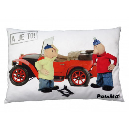 Měkoučký polštářek s oboustranným potiskem motivem oblíbených kutilů Pata a Mata. Vhodný do postýlky, na cesty i jako dekorace do pokojíčku. Materiál mikrovelur, obrázek tisk, náplň duté vlákno.