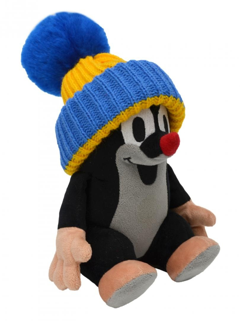 Krteček se sundavací čepicí, který po zmáčknutí náhodně přehrává vybrané originální zvuky z pohádek o Krtečkovi. Vyměnitelné baterie 3xLR44 jsou součástí. V dárkové krabičce.