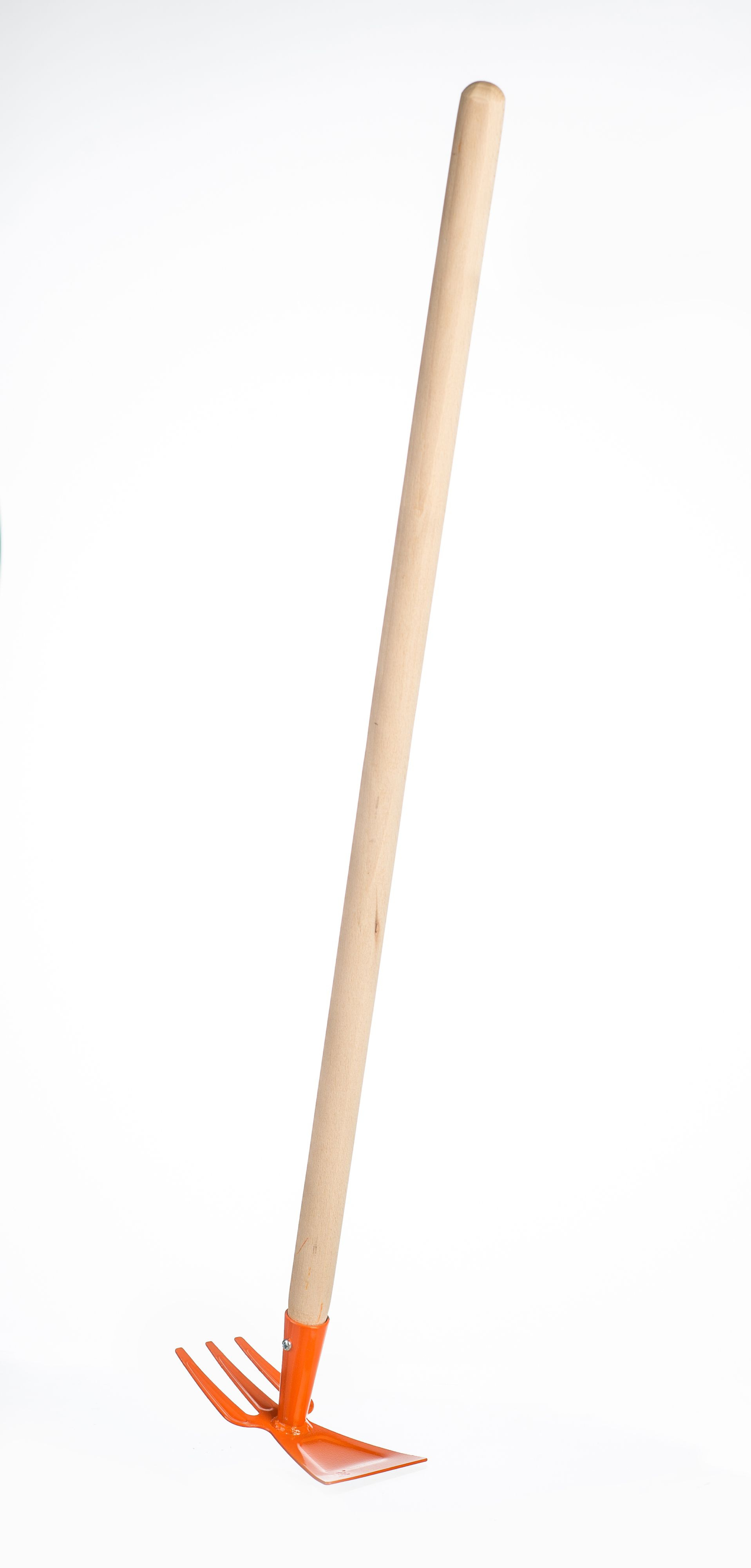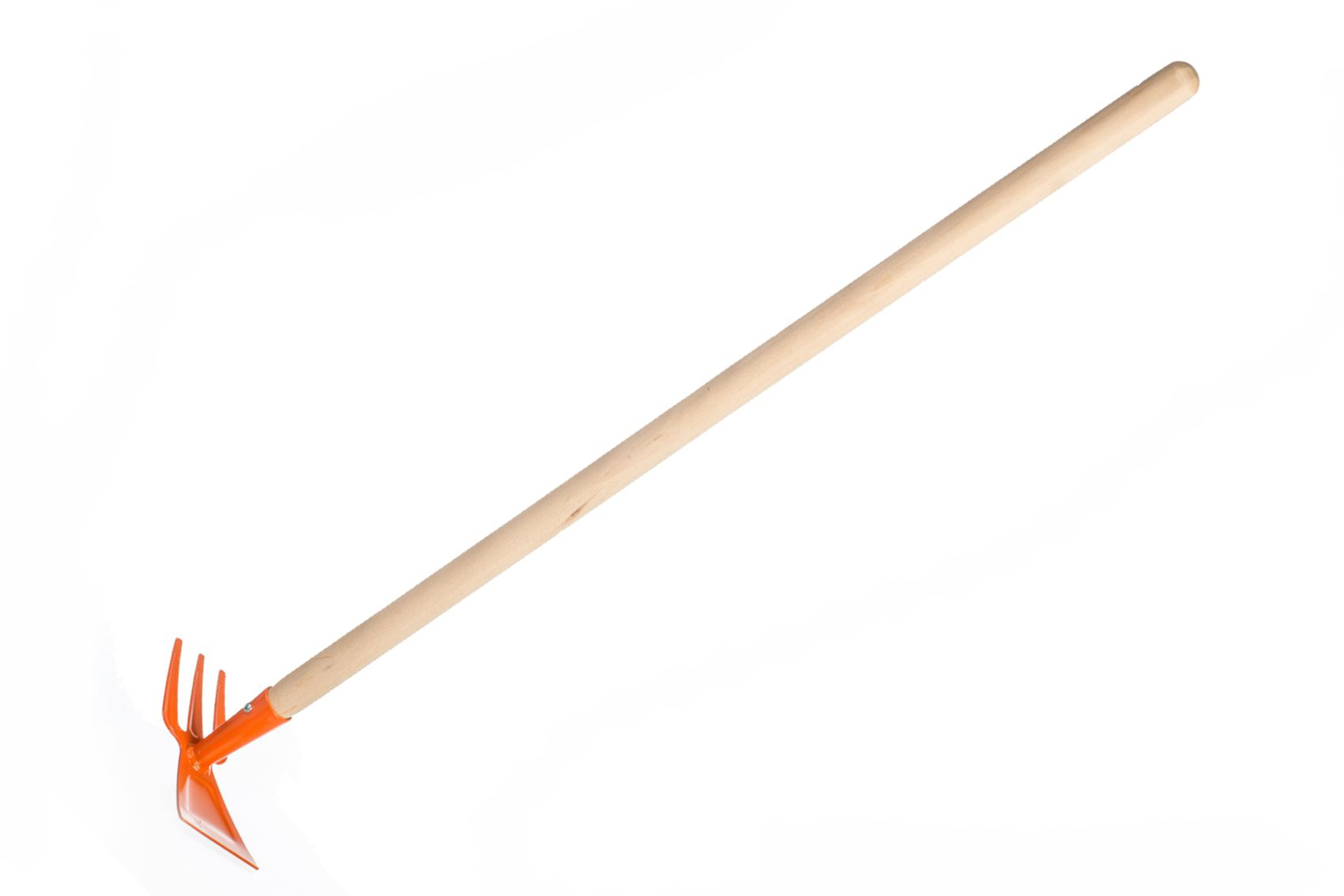 Kovová motyka oranžová oboustranná s dřevěnou násadou pro malé zahradníky. Délka 80 cm. Vhodné pro d