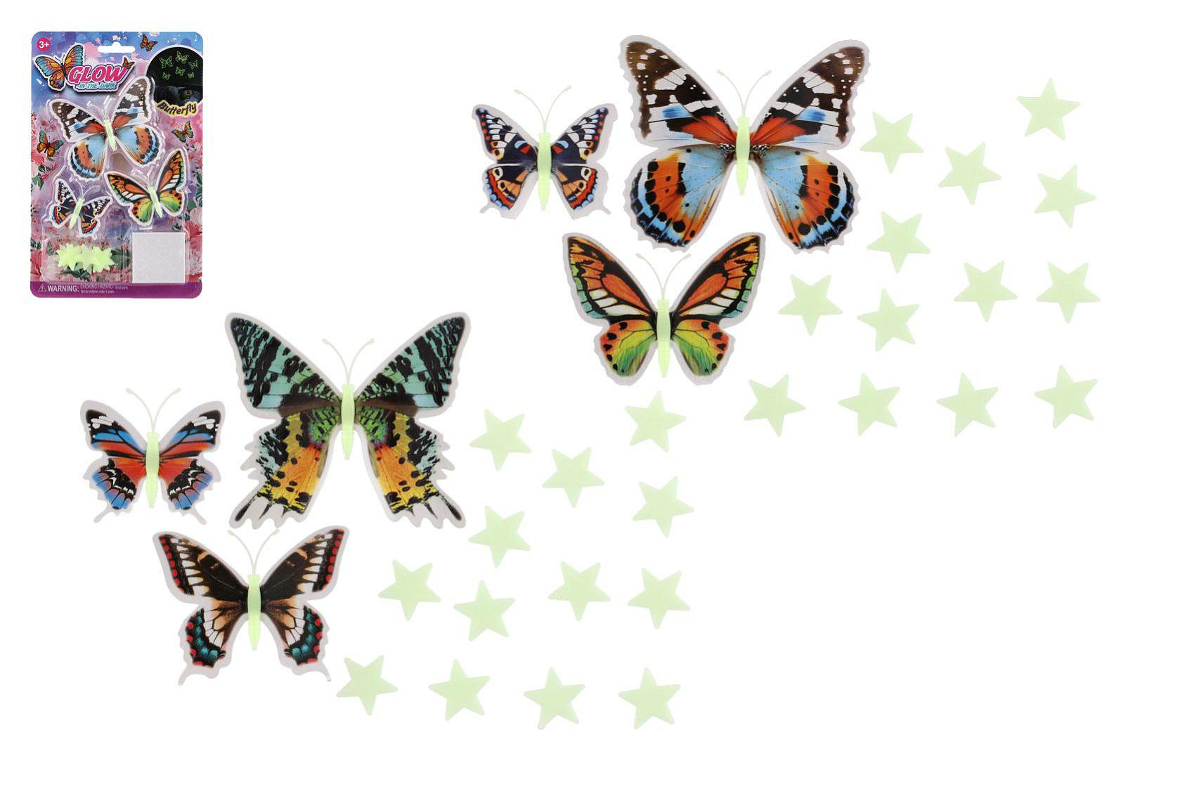 Popis Motýli s hvězdami na zeď/stop svítící ve tmě 2 barvy na kartě