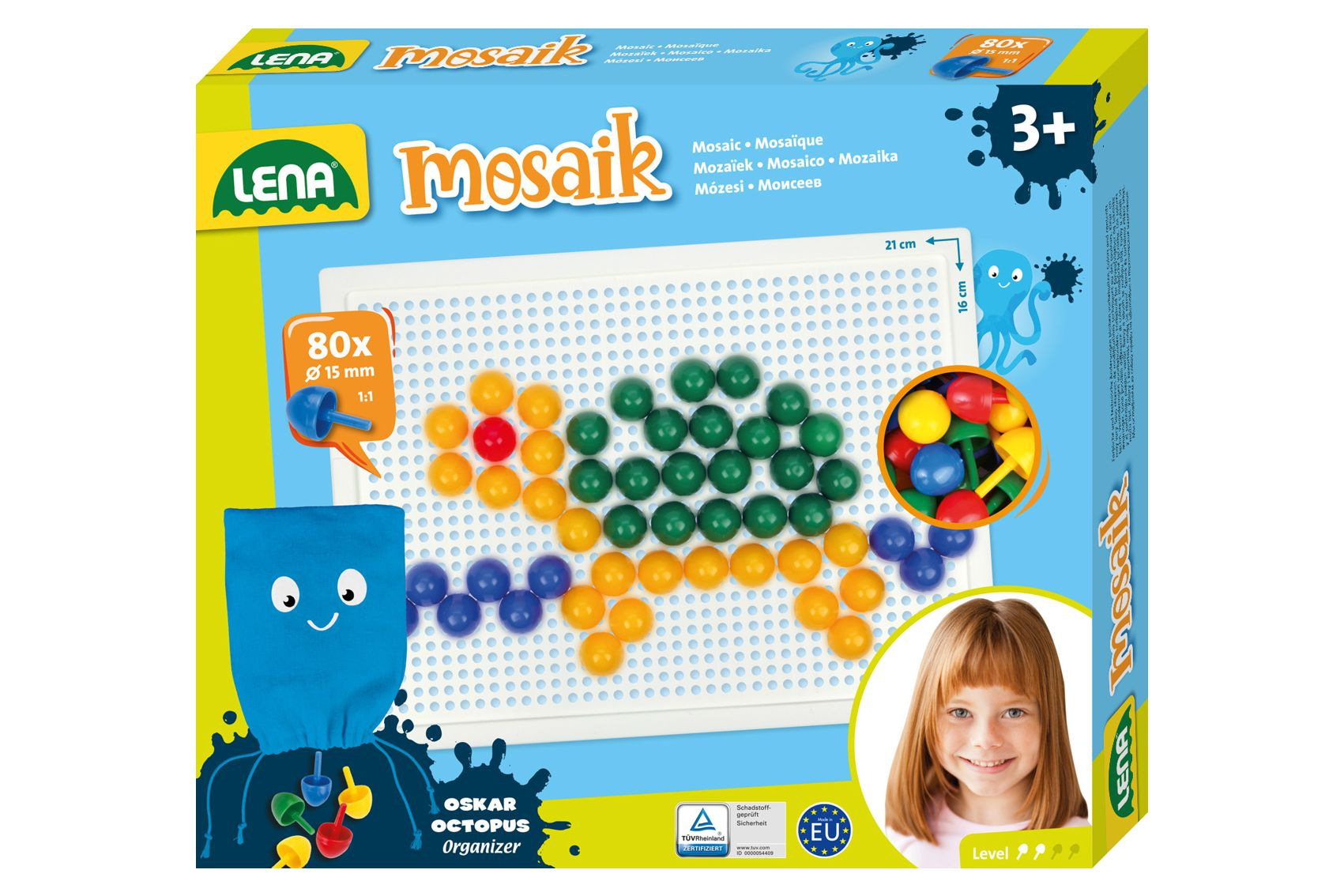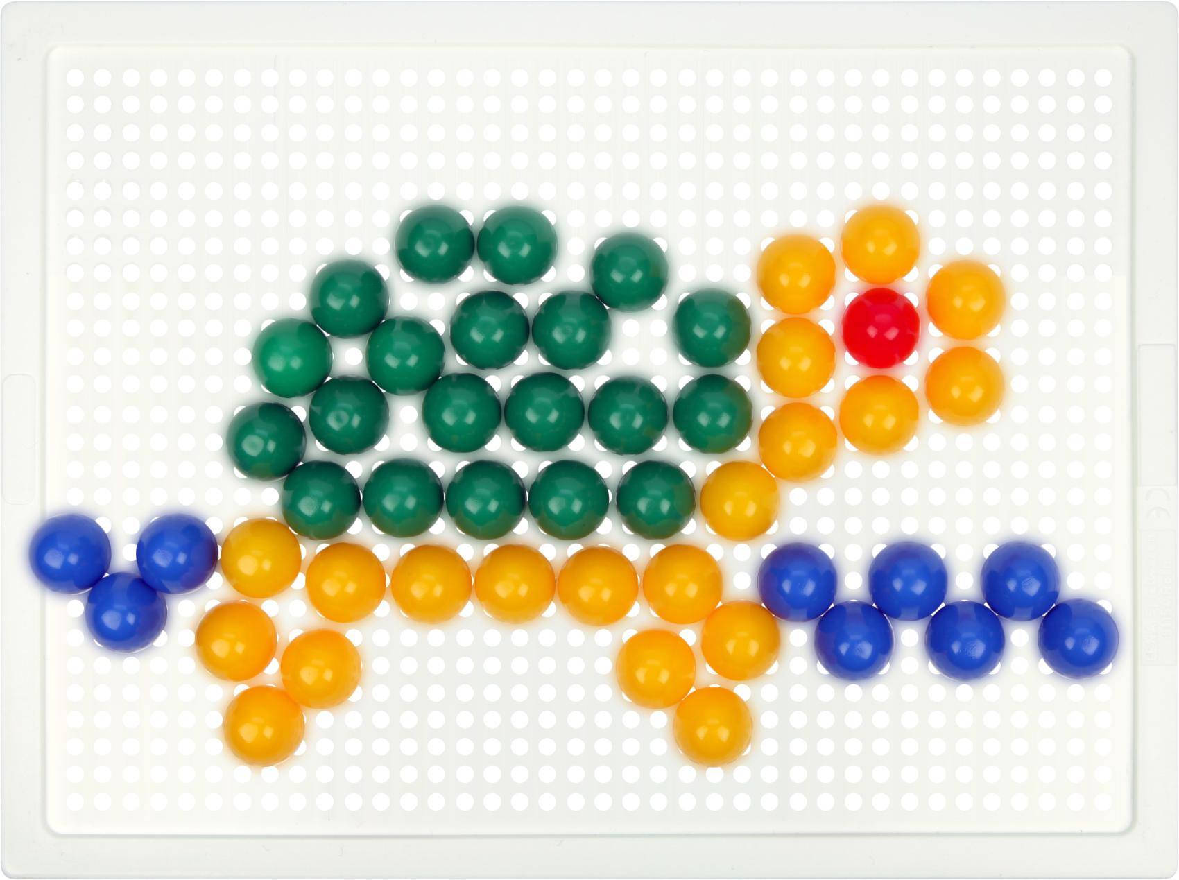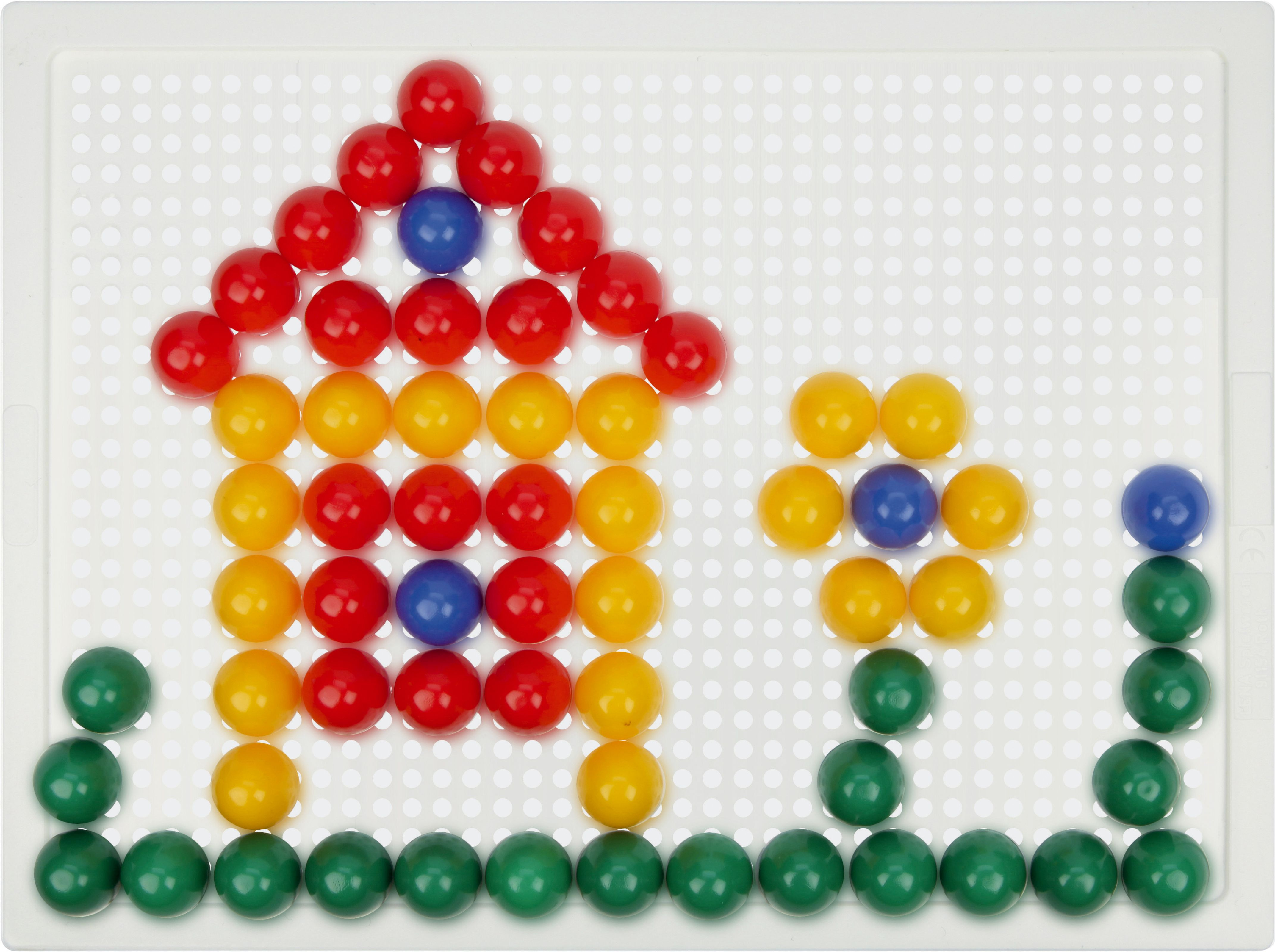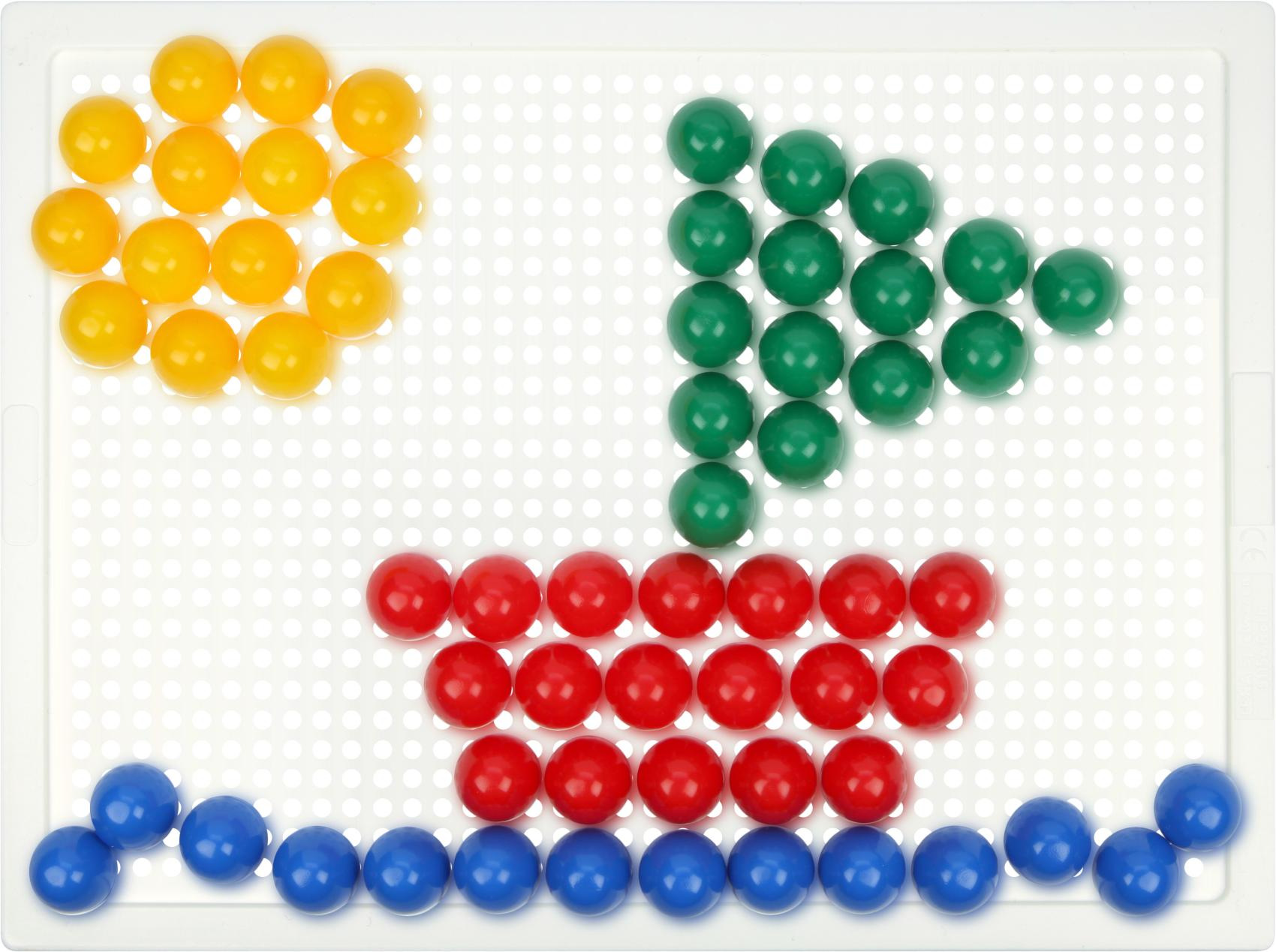 Skládejte barevné kloboučky na podkladovou desku. balení obsahuje 80 ks kloboučků a pytlíček na uložení. Předlohu najdete na zadní straně krabice. Průměr hlavičky kloboučku: 1,5 cm Rozměr podkladové desky: 21 x 16 cm Rozměr krabice: 24 x 21 x 3,5 cm Vhodné pro děti od 3 let