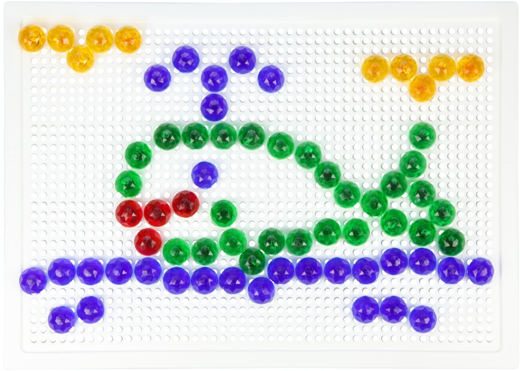 Skládejte barevné kloboučky na podkladovou desku. balení obsahuje 80 ks kloboučků a pytlíček na ulož