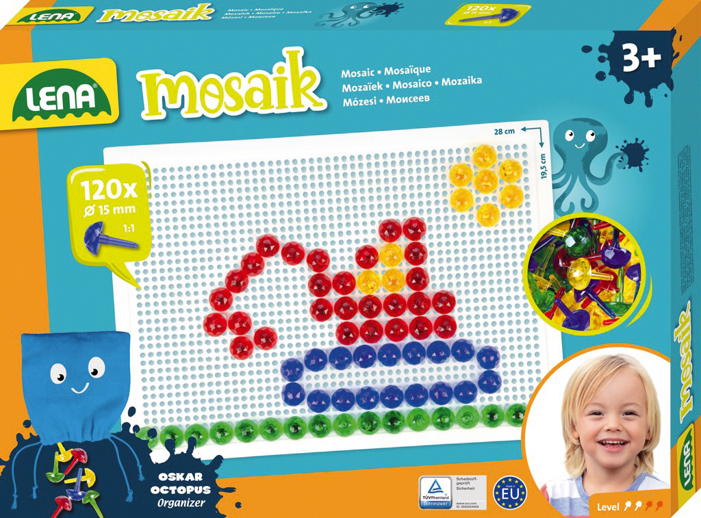 Lena Mozaika klobouček příroda 3,2cm hladký 36ks + předlohy 7ks pro nejmenší v krabici 33x24x4cm 24m+