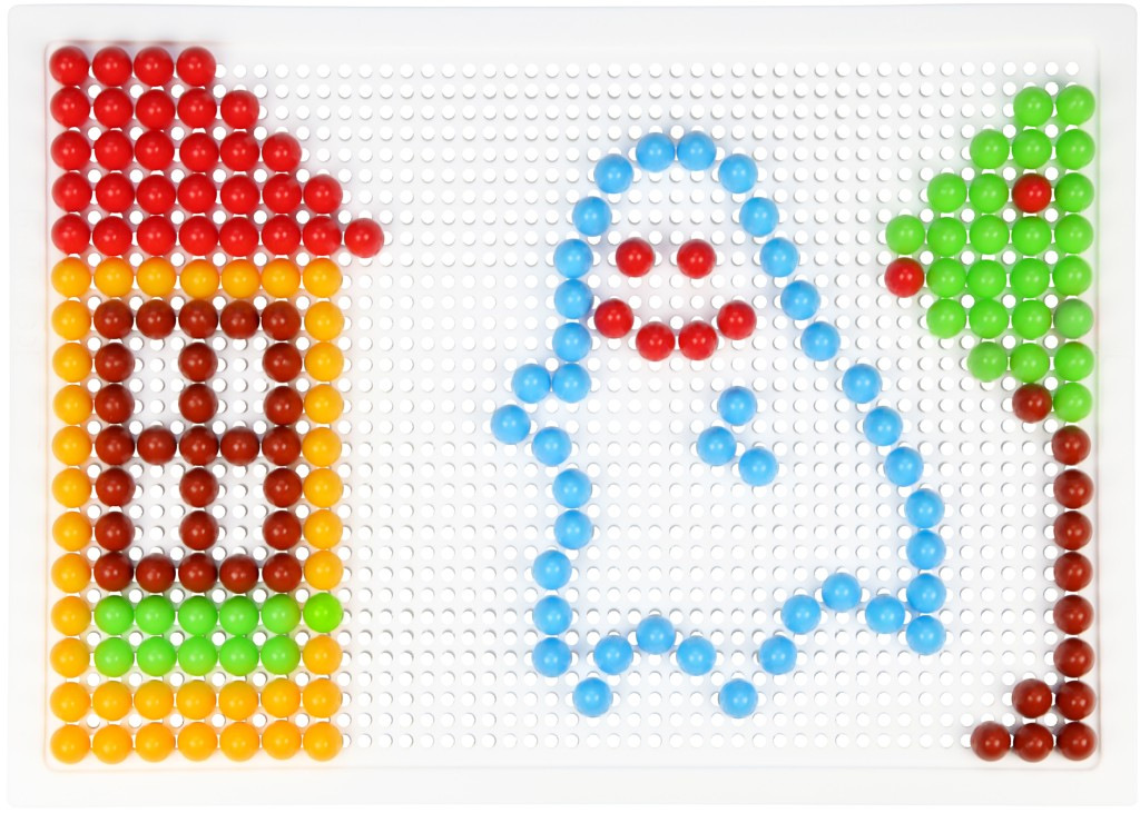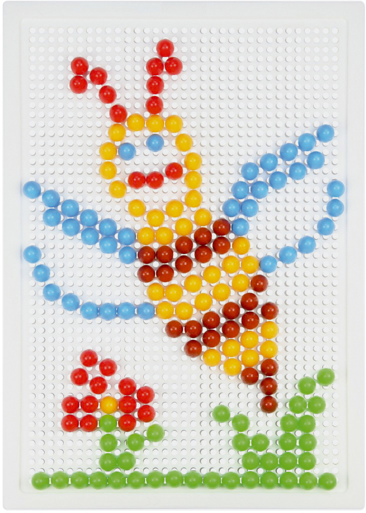 Skládejte barevné kloboučky na podkladovou desku. balení obsahuje 80 ks kloboučků a pytlíček na ulož