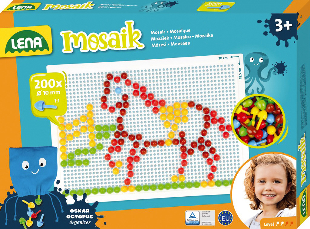 Lena Mozaika klobouček doprava 3,2cm hladký 36ks + předlohy 7ks pro nejmenší v krabici 33x24x4 24m+