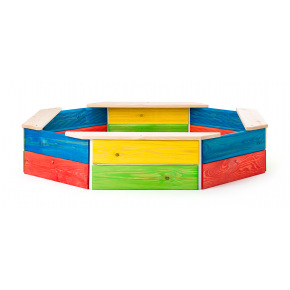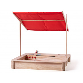 Pískoviště z masivního dřeva je vybaveno víkem, které chrání písek před zvířaty, spadaným listím a jinými nečistotami v době, kdy si v něm děti nehrají. Pokud si děti na pískovišti zrovna hrají, je víko otevřeno a promění se v lavičky, které umožní pohodlné sezení při hře.| Rozměr: 120 x 113 x 19 cm | Rozměr rozložená výška s lavičkou: 120 x 113 x 39 cm / Věk: 3+