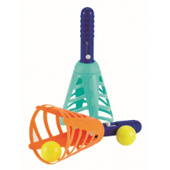 Tato hra je ideální pro trénink koordinace mezi rukou a očima. Cílem hry je vystřelovat míček a chytat ho do košíku. Pro 1-2 hráče. Sada obsahuje 2 koše do ruky a 2 míčky.