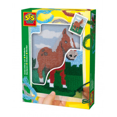 Dečka na vyšívání s bavlnkami a s tupou jehlou vhodnou pro děti – vzor kůň. Sada obsahuje: 1x jehla tupá, mix bavlnek, návod. Věk: 6+
